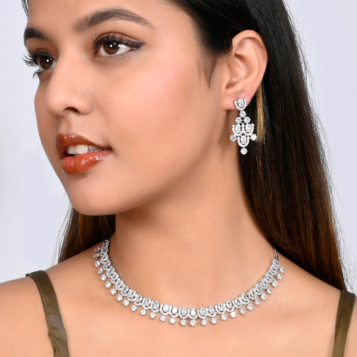 Sparkling Elegance Radiant Reverie American Diamond Necklace Set