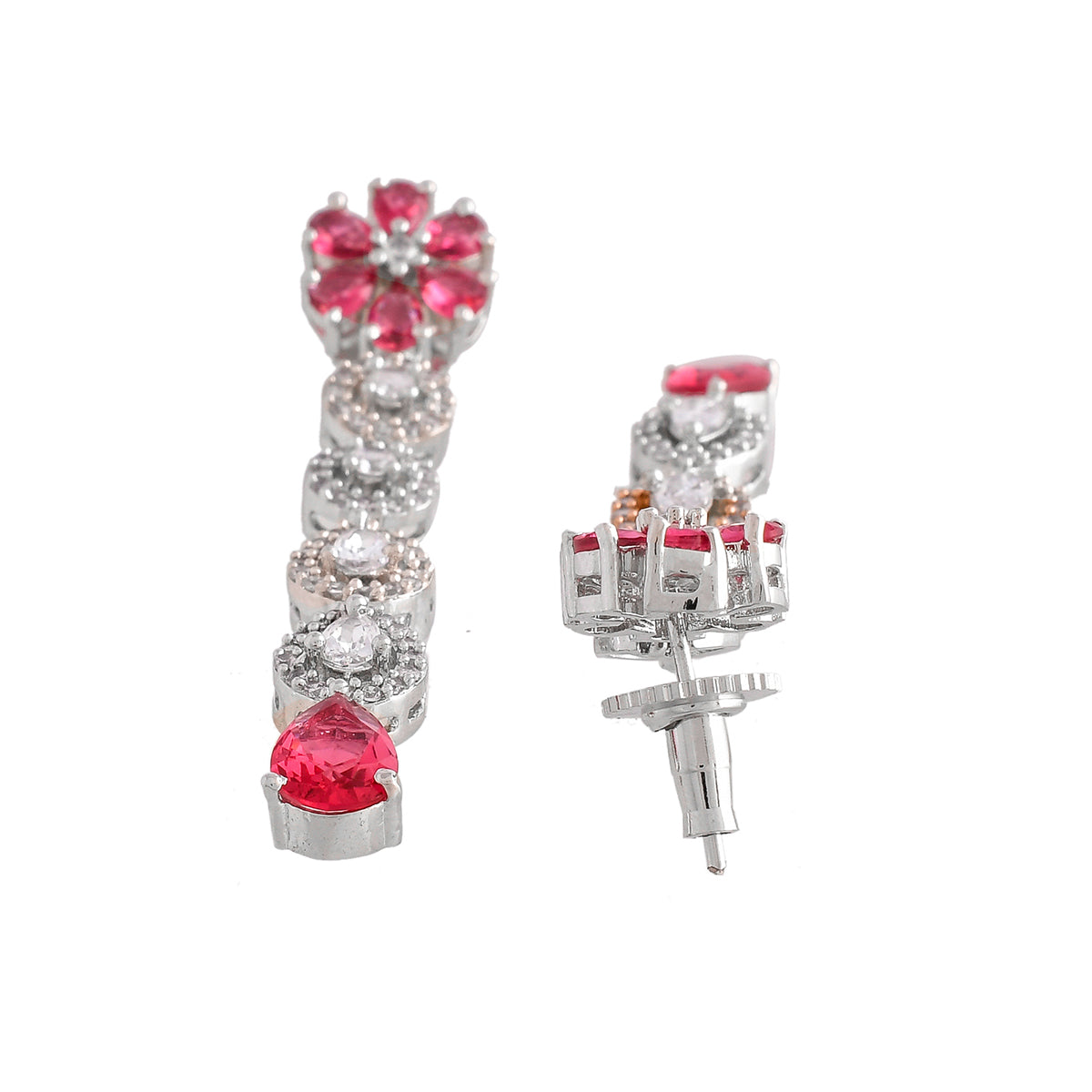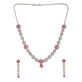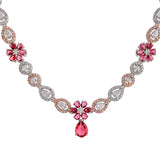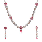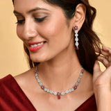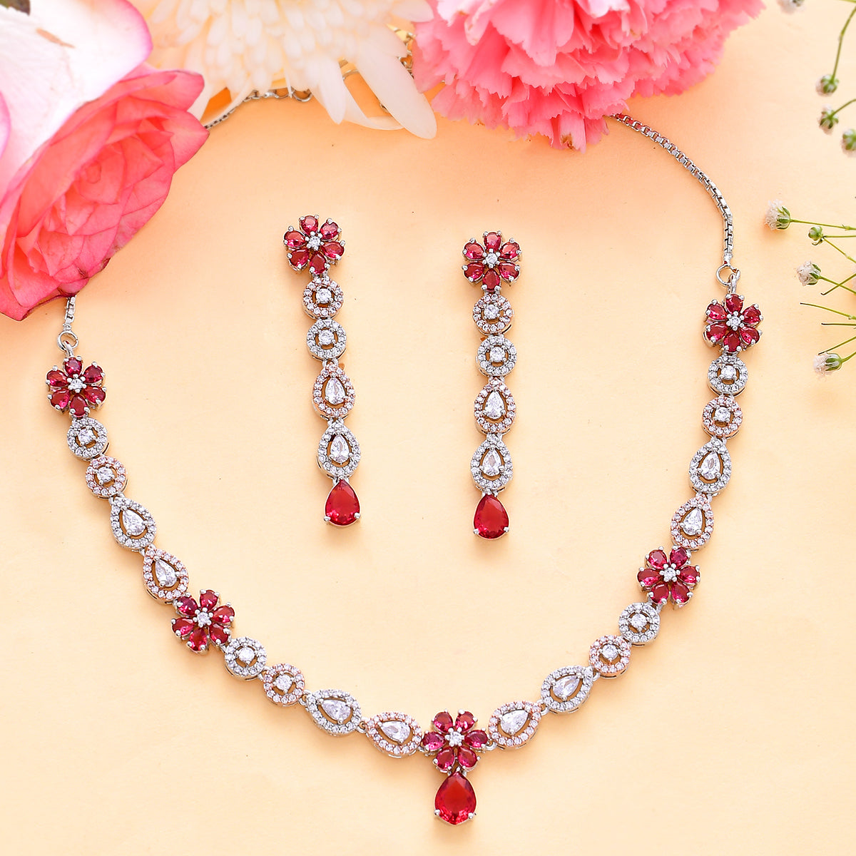 Sparkling Elegance Red and White CZ Floral Jewellery Set