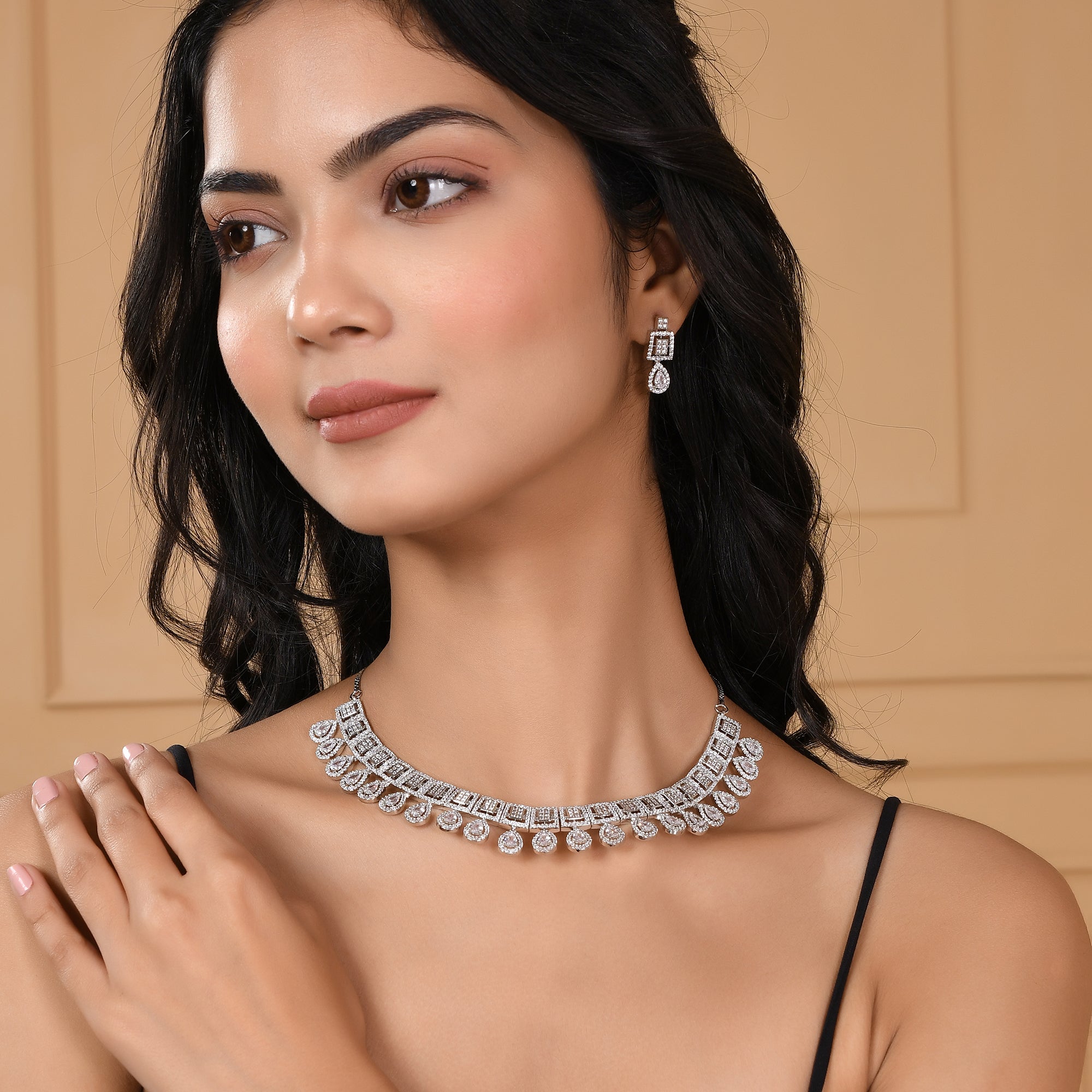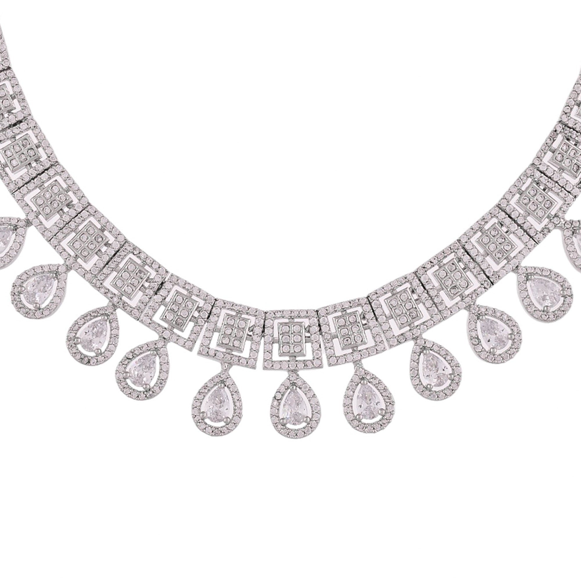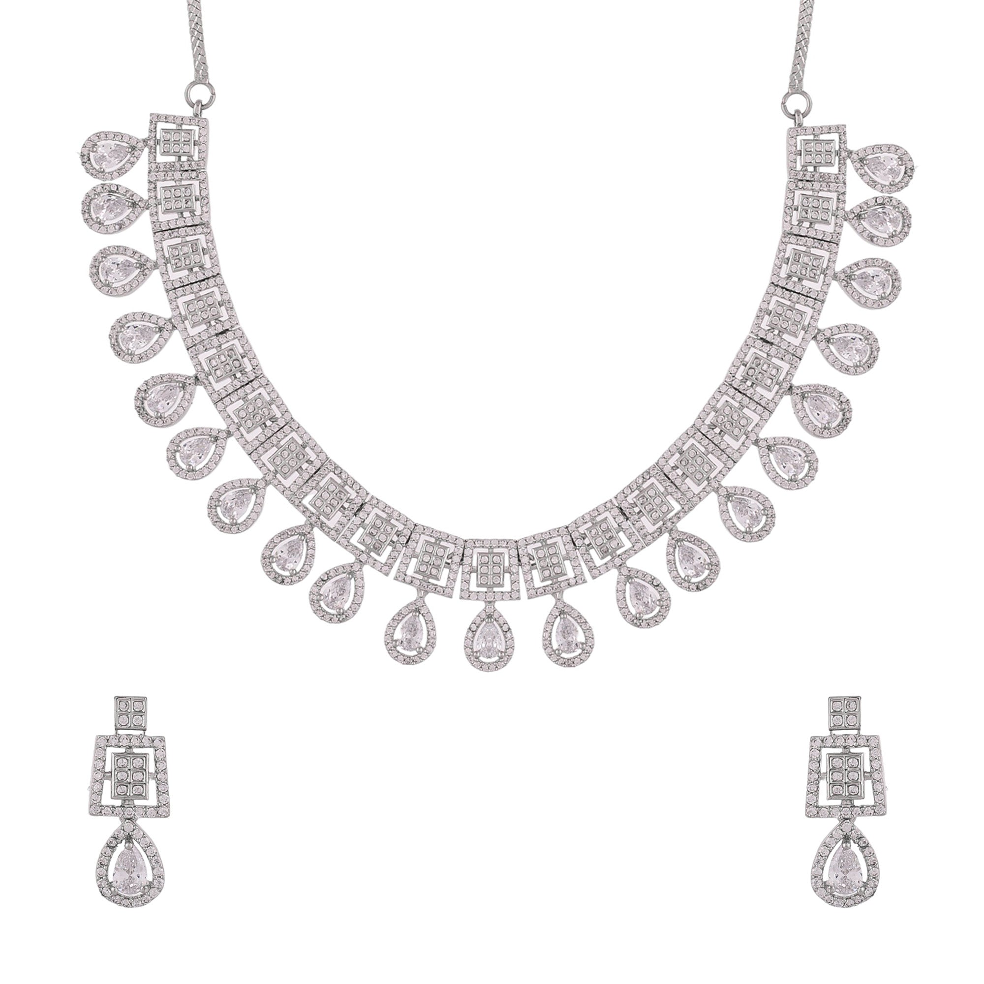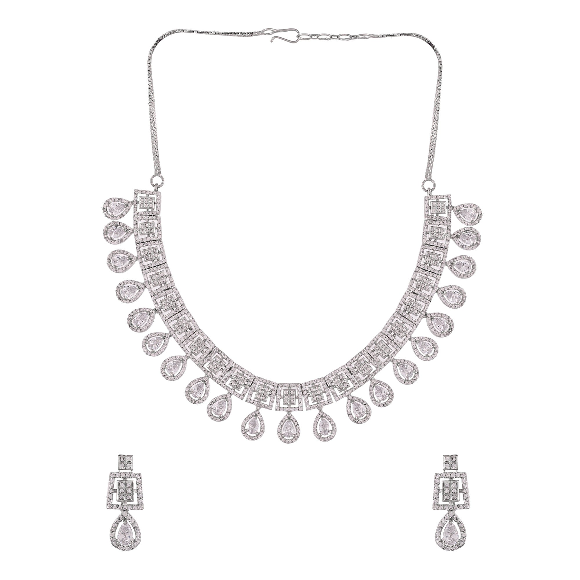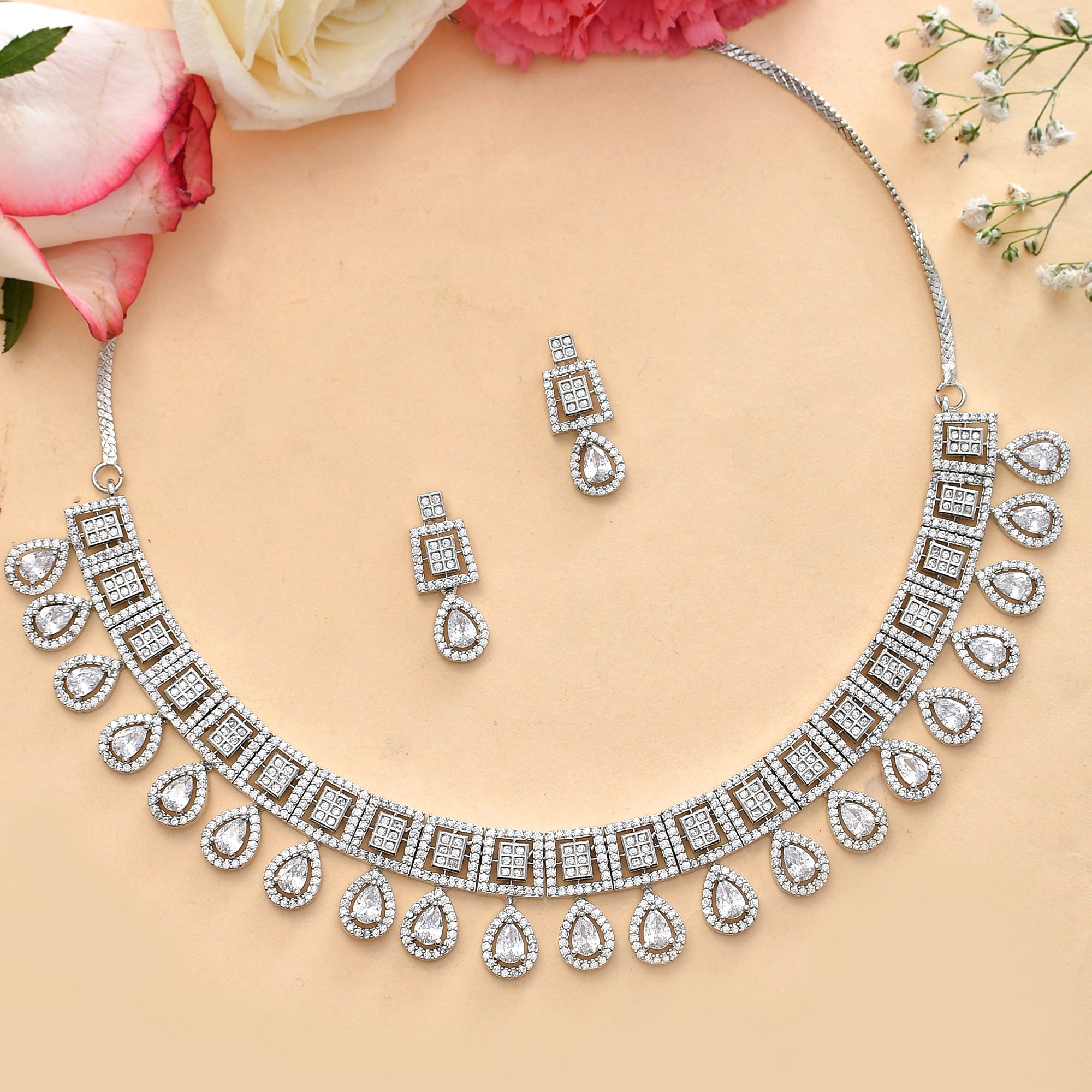 Teardrop Cut Zircons Silver Plated Brass Jewellery Set