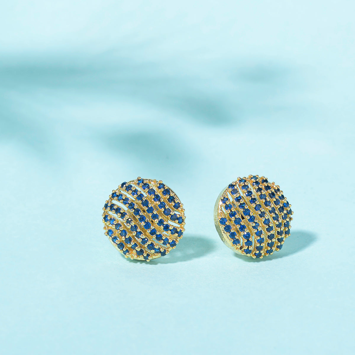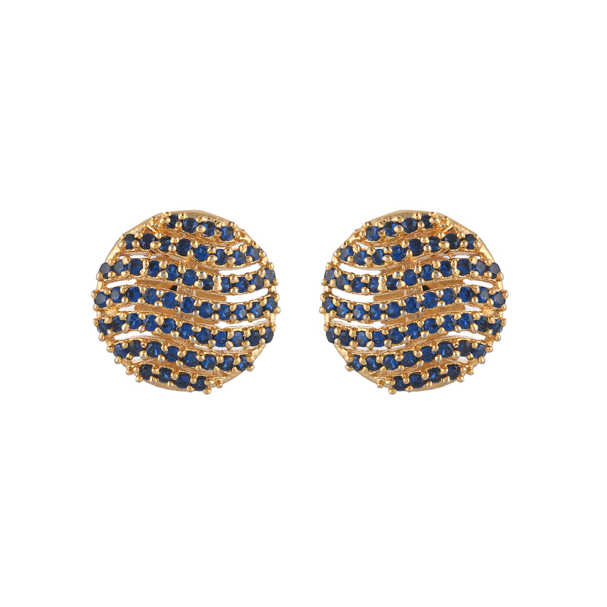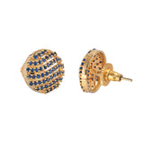 Sparling Elegance Royal Blue Round Cut Zircons Brass Gold Plated Earrings