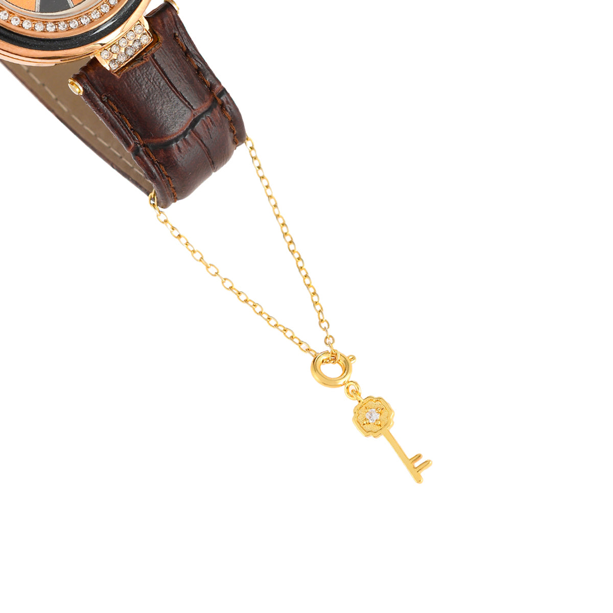 CZ gem studded key shaped charm for watches and bracelet. Made from brass and a good V Day gifting option.