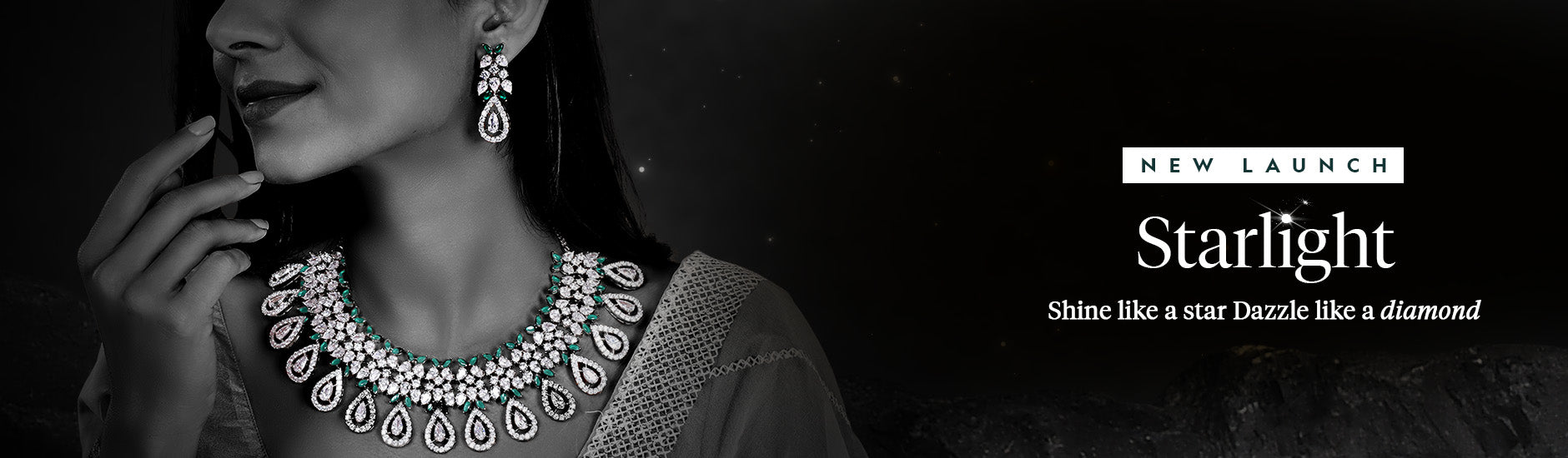Choker necklace and matching stud earrings jewellery set embellished with green and white zirconia gemstones. Made from brass and white rhodium plated, the set is versatile, lightweight and comfortable.Caring for your fashion jewelry: We, at Voylla, take care of every...