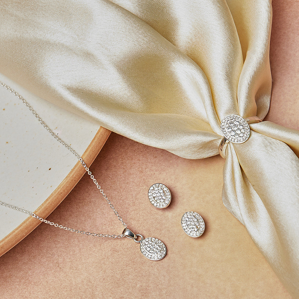 A box set featuring a pendant, earrings and ring from our Silver CZ collection.