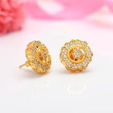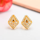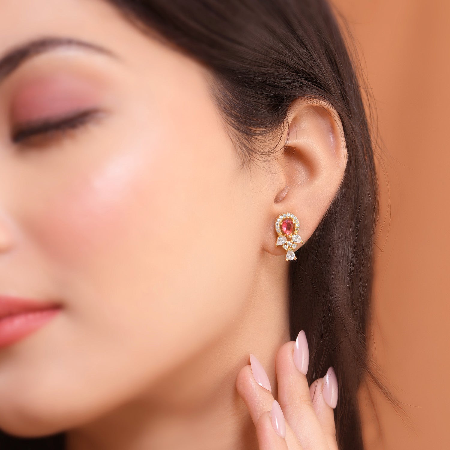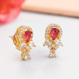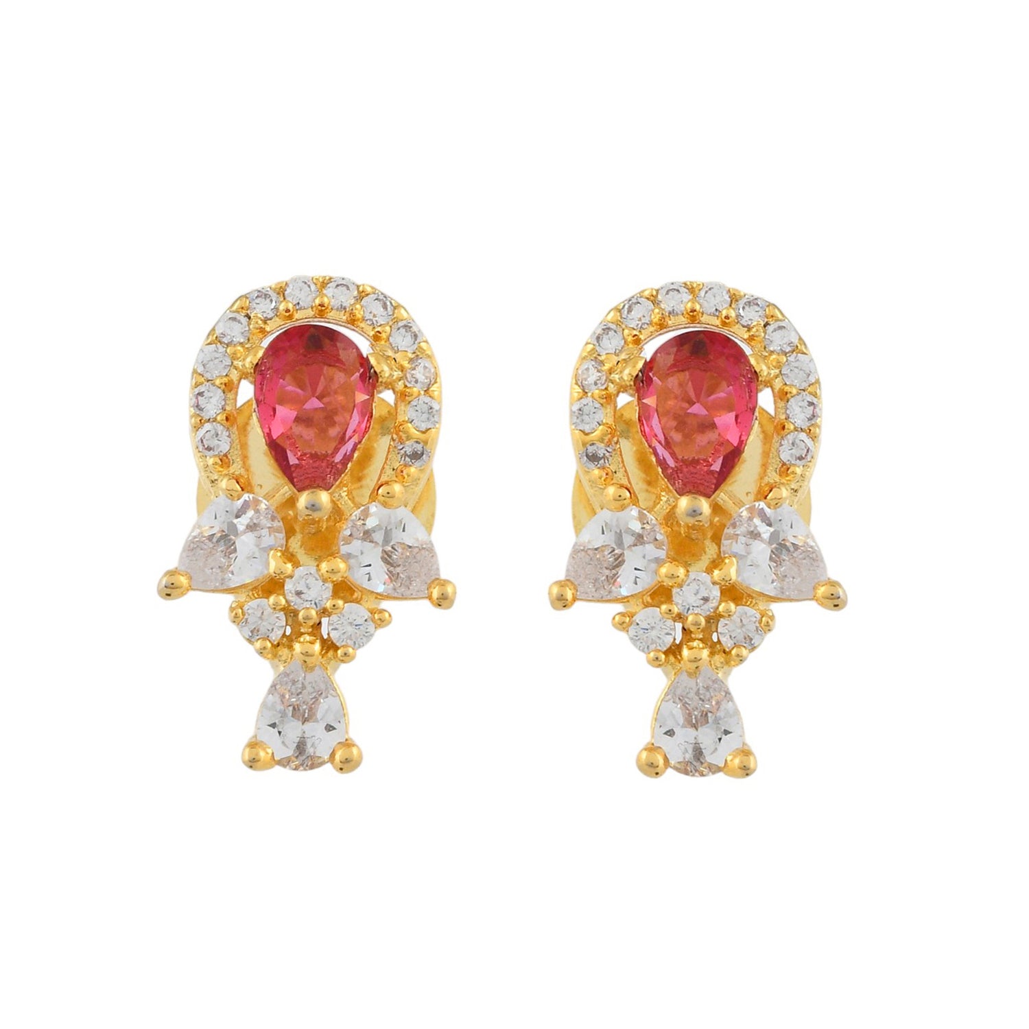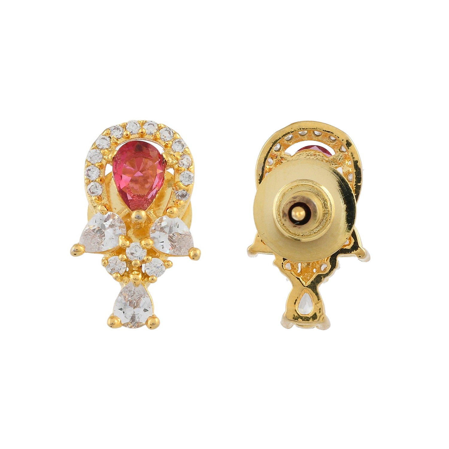 Crafted from high-quality brass and plated with luxurious gold, these earrings for women are designed to impress. The centerpiece of each stud features a captivating oval-cut pink stone, surrounded by a halo of sparkling American diamonds that catch the light beautifully. Below the central stone, additional clear stones dangle gracefully, adding a touch of sophistication and movement to the design. These party wear studs earrings for women are perfect for any special occasion, whether you’re looking to make a statement at a party or add a touch of elegance to your everyday ensemble. They also make an ideal gift for a wife, sister, or for self-purchase during special occasions like Rakhi.