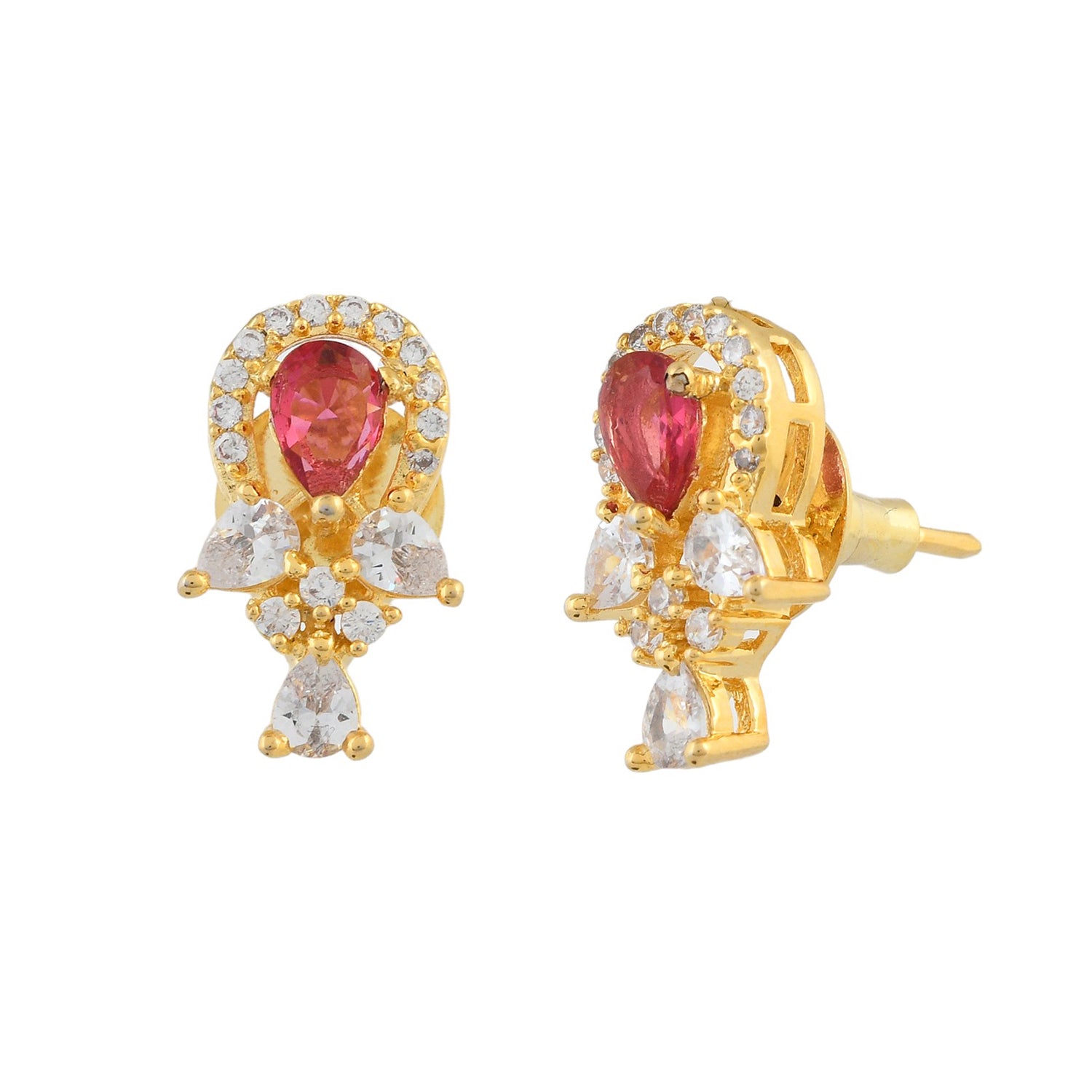 Sparkling Elegance Radiant Pink American Diamond Studs Earrings