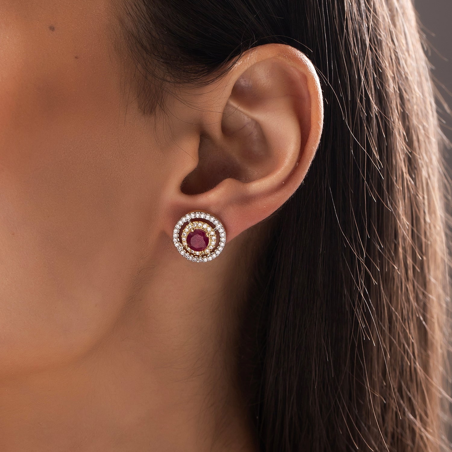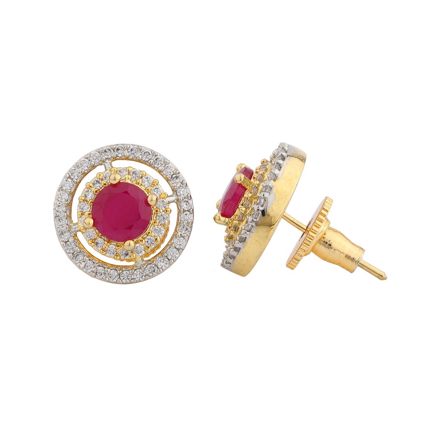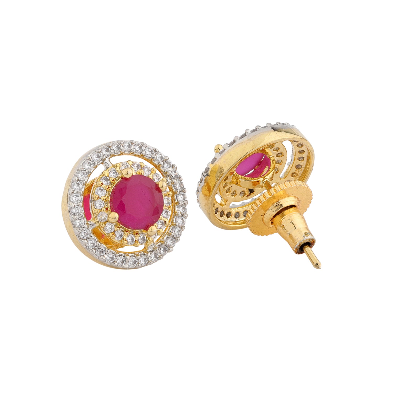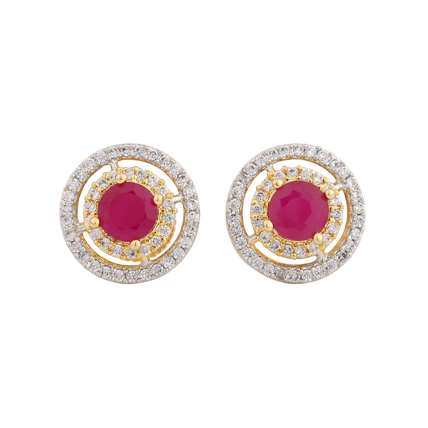 A dazzling blend of traditional charm and contemporary sophistication, these American diamond stud earrings are crafted from high-quality brass with a stunning gold and white rhodium plating for a luxurious finish. The centerpiece features a deep ruby-red stone, surrounded by a meticulously arranged halo of brilliant-cut CZ diamonds, adding a radiant sparkle to your look. Whether you’re styling these women’s earrings with an elegant silk saree for a wedding, a chic cocktail dress for a party, or a smart office outfit, they effortlessly elevate your style. Designed to be lightweight and comfortable, these statement earrings are perfect for festivals like Diwali, Holi, and Raksha Bandhan, as well as romantic occasions like Valentine’s Day. A beautiful gift for women, whether for your sister, girlfriend, wife, mother, or best friend, these earrings symbolize love and appreciation. If you’re looking for the perfect mix of Indian elegance and modern minimalism, these stunning stud earrings are an unmissable addition to your collection.