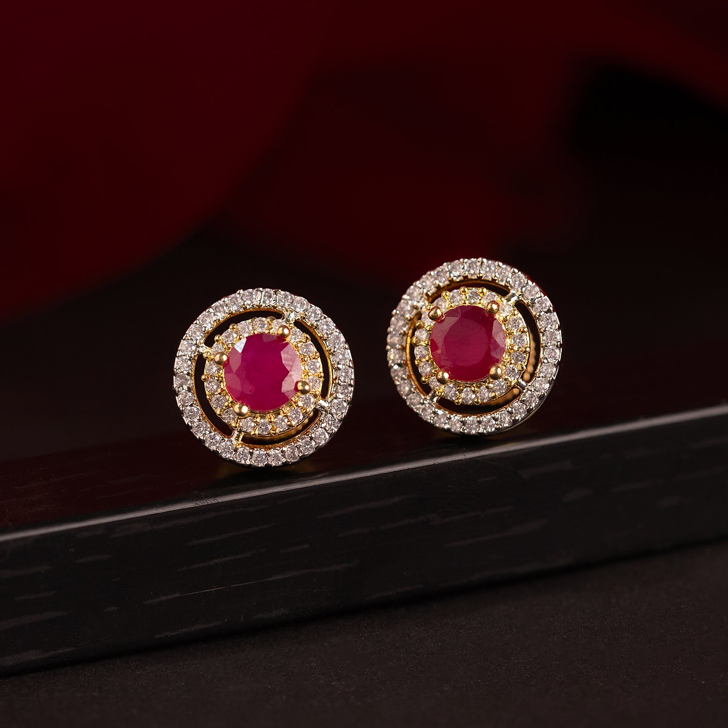 Sparkling Elegance Ruby-Studded American Diamond Earrings