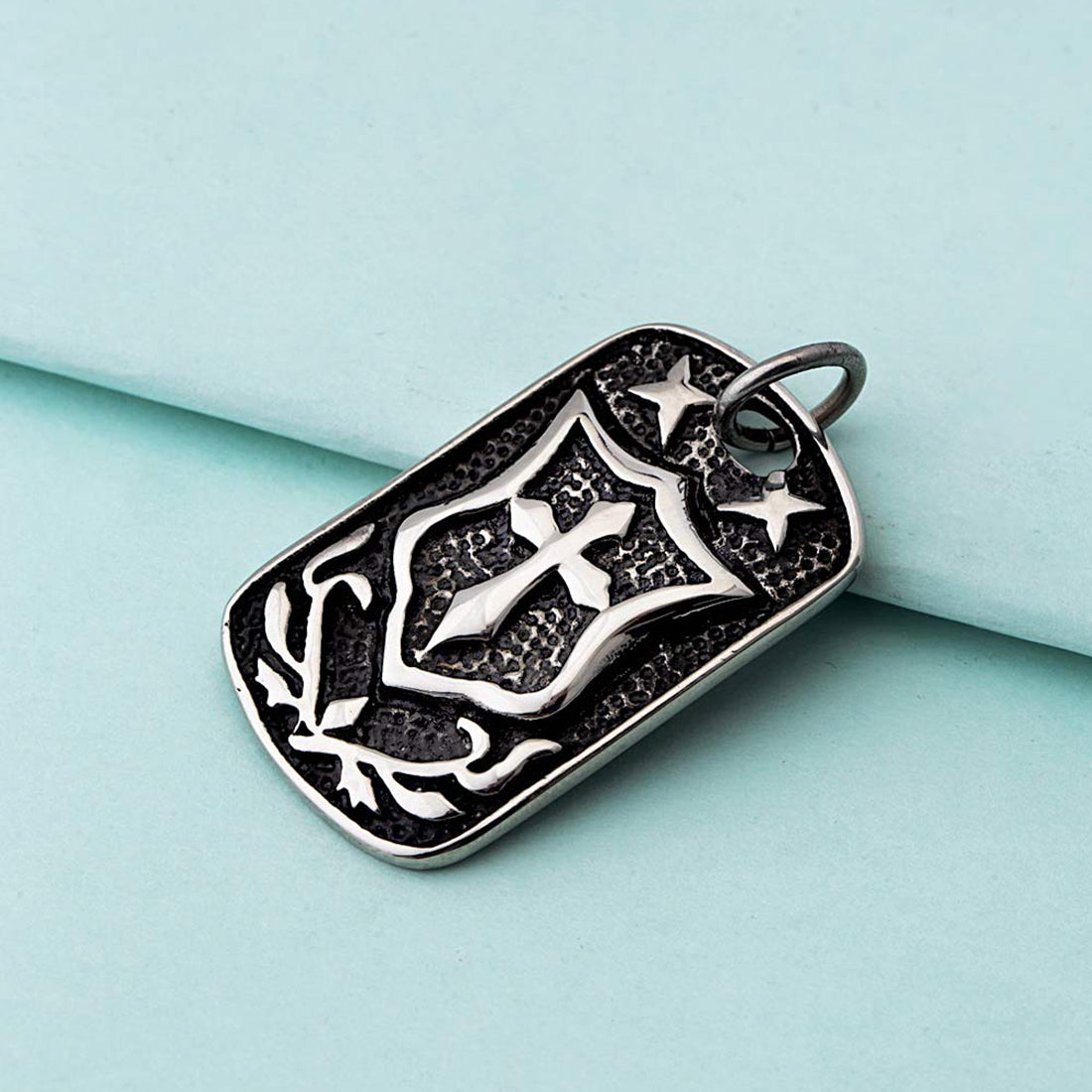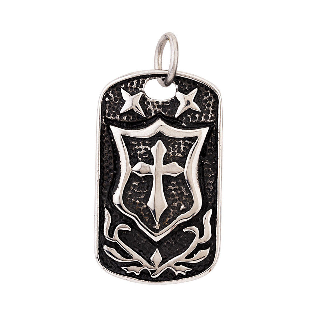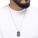Shield pendant made from stainless steel and oxidized silver plated. Wear with a casual black t-shirt. To make your accessories last longer avoid harsh chemicals and moisture. Keep dry, clean with dry cloth and wear with panache. "India’s largest fashion jewelry brand DARE, comes from the House of Voylla as a limited edition of handcrafted accessories for the modern Indian men. "