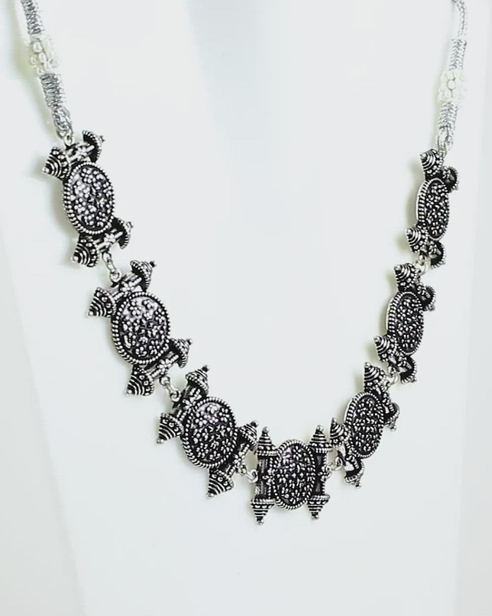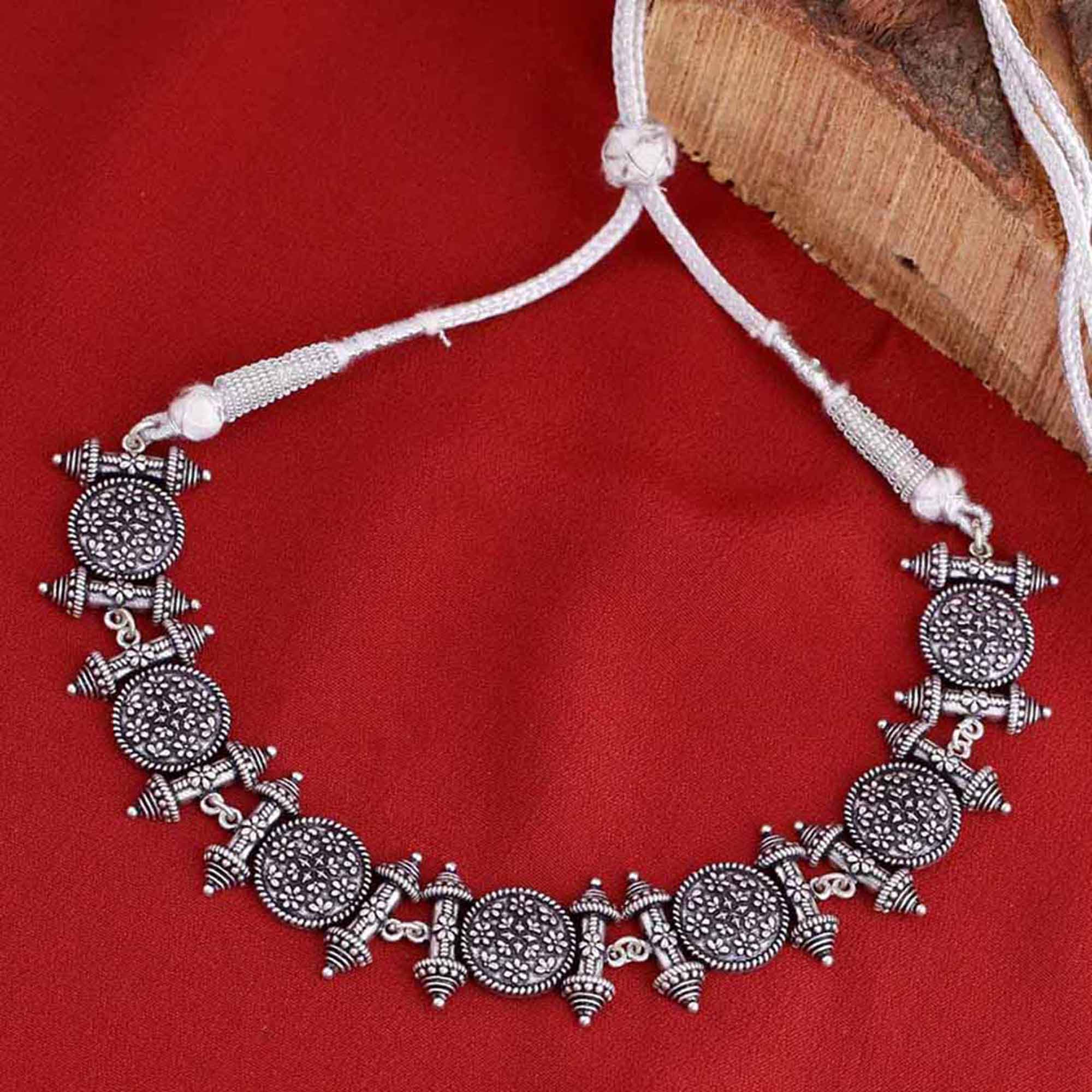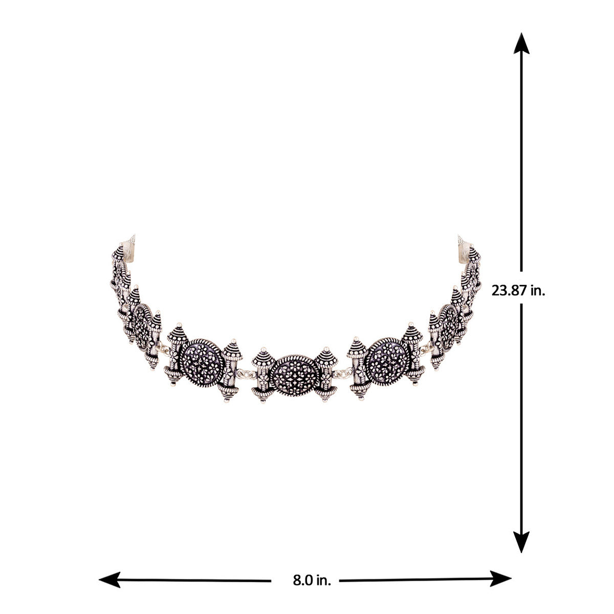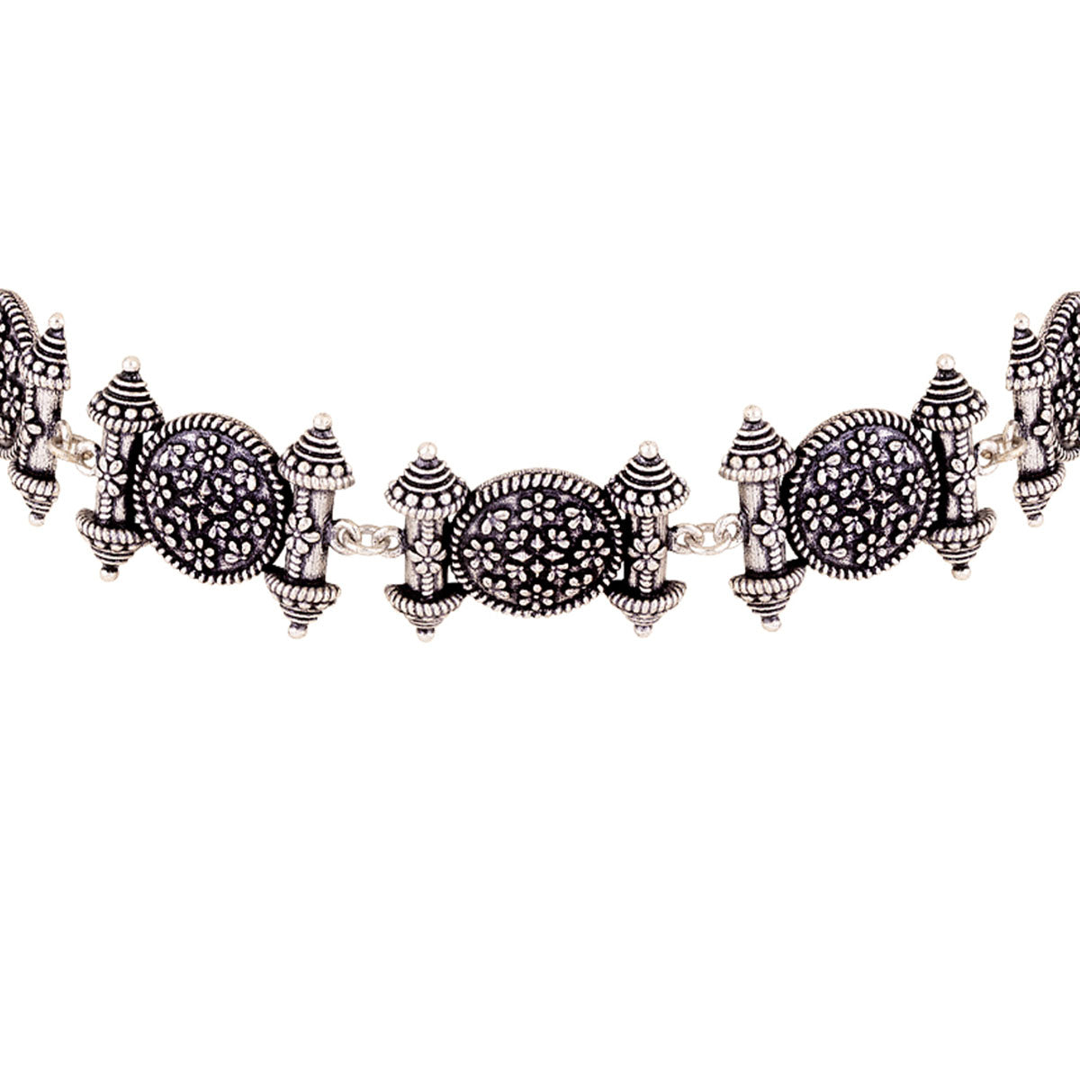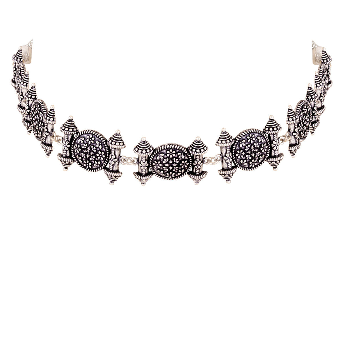 Temple design choker necklace. Made from brass and oxidised silver plated. Wear with a casual summer dress.