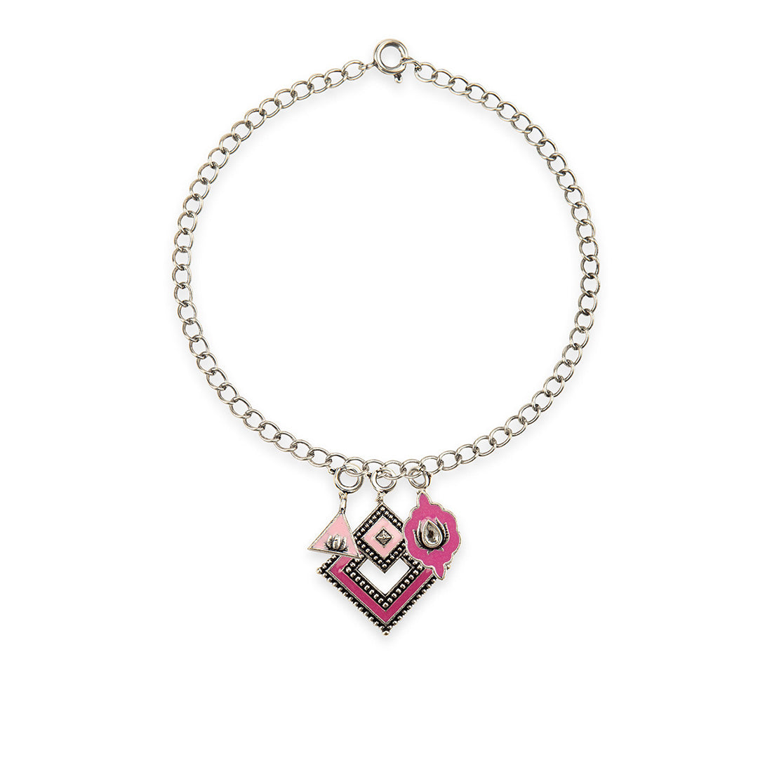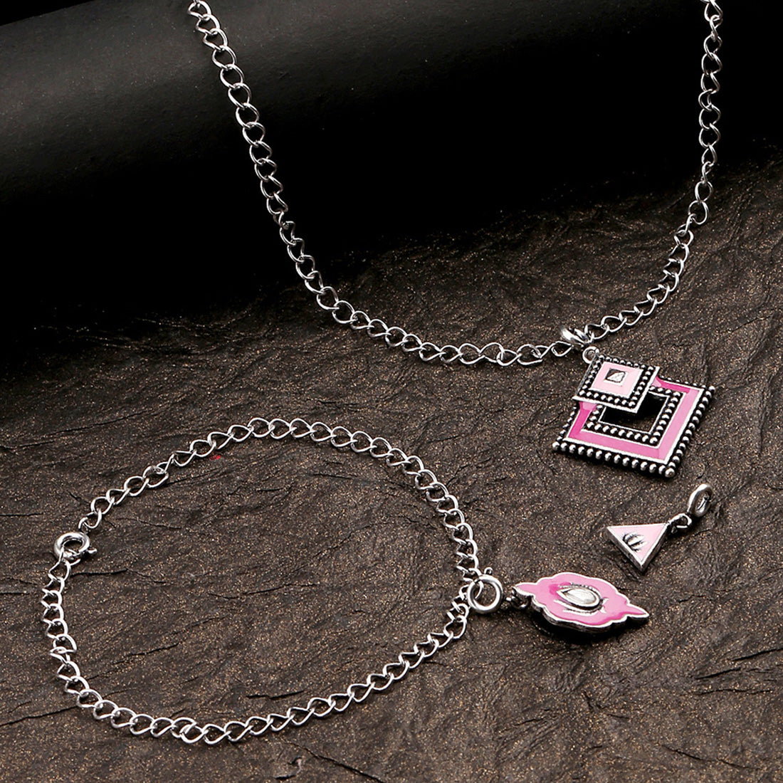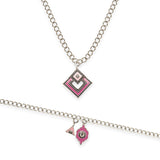 Pink Shade Enameled Charms Pendant with Bracelet