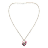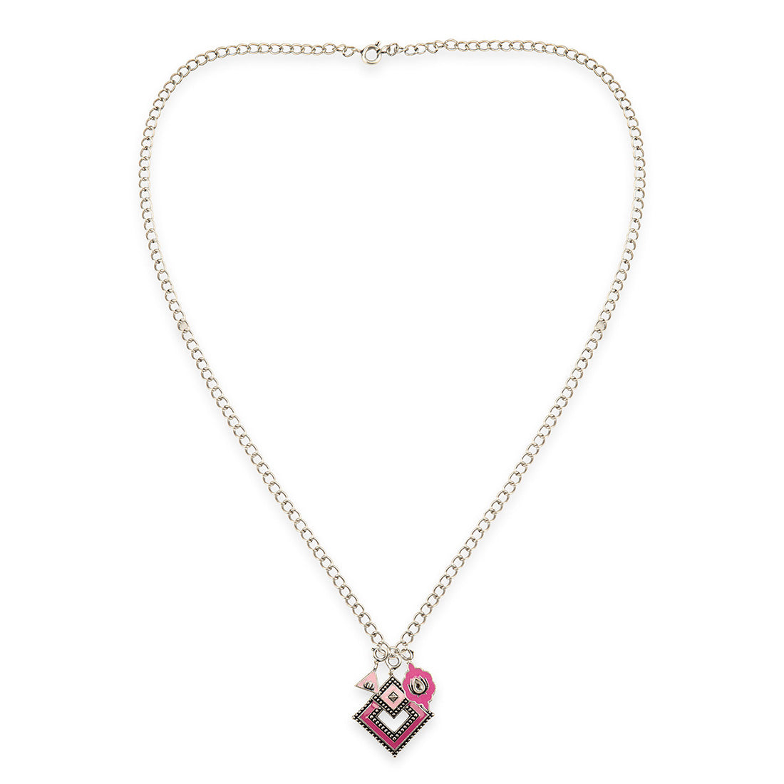 If you want to go for a more modern, simple, yet very trendy and fashionable necklace make sure to decorate your neck with this pink shaded enameled charm pendant. This piece is made out of brass, with a dual tone...