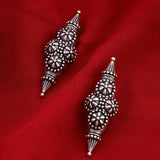 Inspired by classical Indian music and musical instruments, these brass studs have been crafted into a dholki motif. Oxidized silver plated and enameled, the studs are a perfect match for casual ethnic looks. This piece of jewelry comes with the...