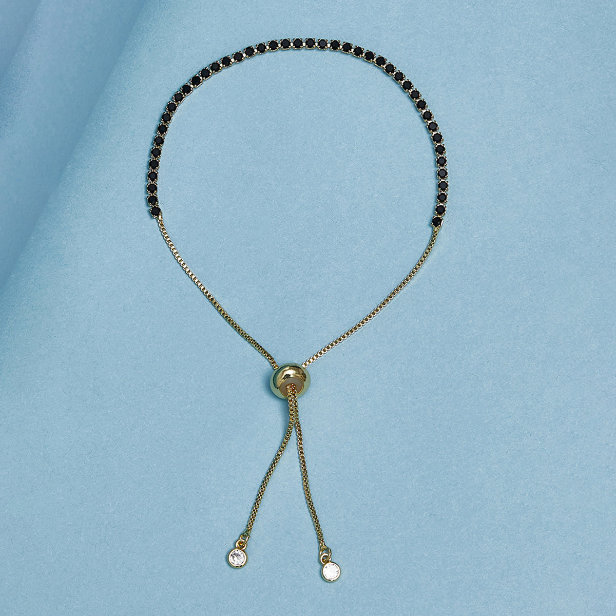 Clear CZ gems in a round cut have been used in the embellishment of this chain bracelet, which has been fashioned out of brass. Yellow gold plating adds to the allure of this slip-on bracelet, which promises to be a comfortable wear at all times. Pair with any look or outfit.