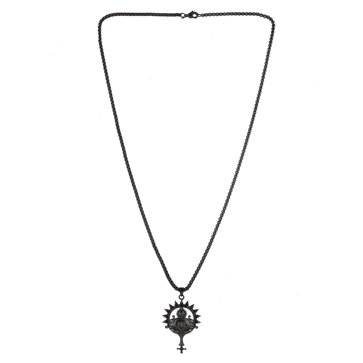 This Voylla pendant for men is a perfect blend of contemporary design and spiritual symbolism, making it an ideal accessory for both casual wear and gifting. Crafted from durable brass, this black pendant for men features a striking black rhodium...