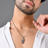The Eclipse Wayfinder Black Men's Pendant is where deep-rooted Indian symbolism meets bold, contemporary fashion. Crafted in premium brass with a sleek black rhodium plating, this stylish pendant for men showcases an intricate compass-inspired design—signifying direction, purpose, and inner strength....