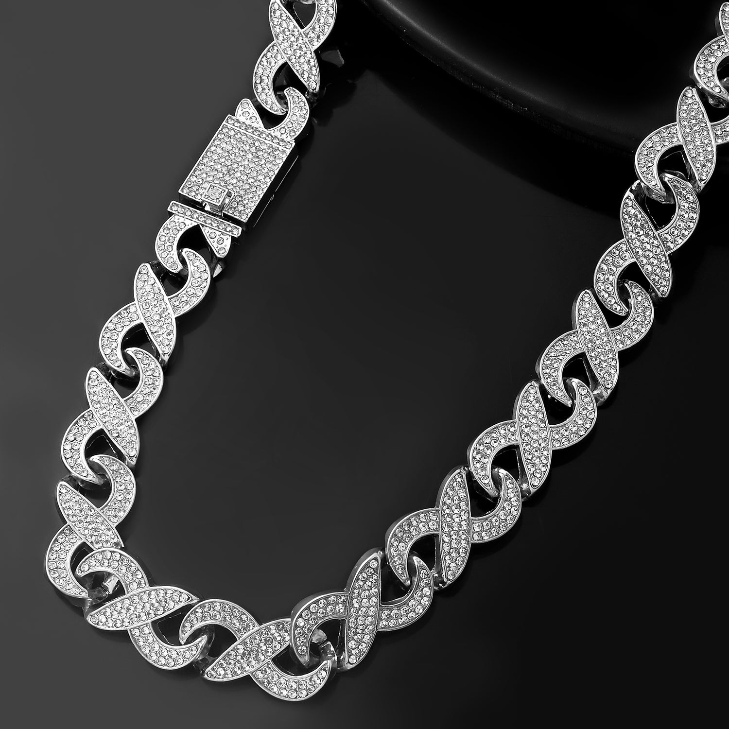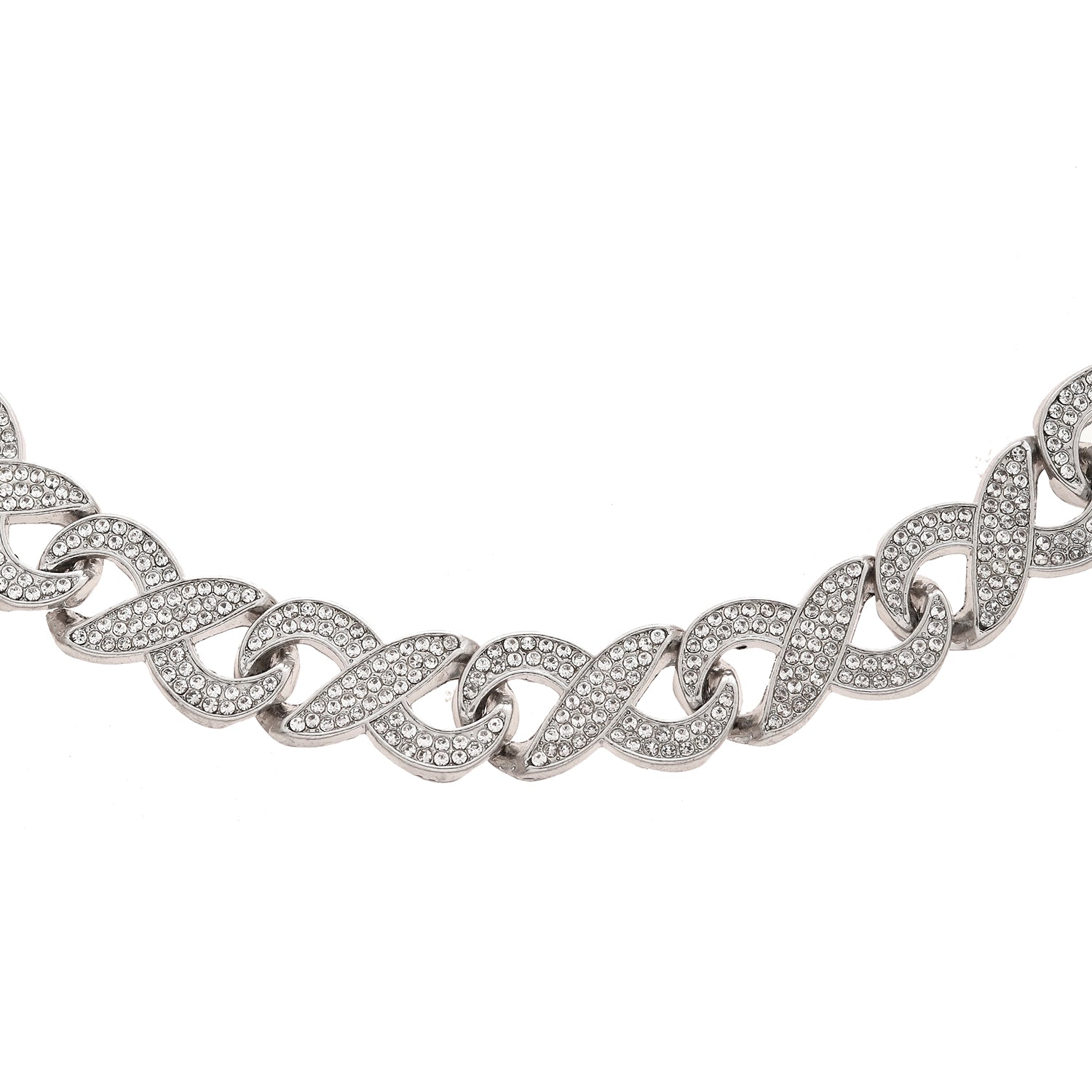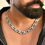 Elevate your style with this exquisite men's necklace from Voylla. Crafted from high-quality alloy and plated with luxurious white rhodium, this necklace exudes sophistication and timeless elegance. The design features intricate interlocking links adorned with sparkling American diamonds, adding a touch of brilliance and refinement. Perfect for special occasions, this necklace is ideal for party wear, wedding wear, or as a thoughtful gift for Valentine's Day, Diwali, Rakshabandhan, or any other celebration. Whether you're looking for a gift for your brother, lover, boyfriend, or husband, this stunning necklace is sure to be cherished for years to come.