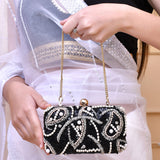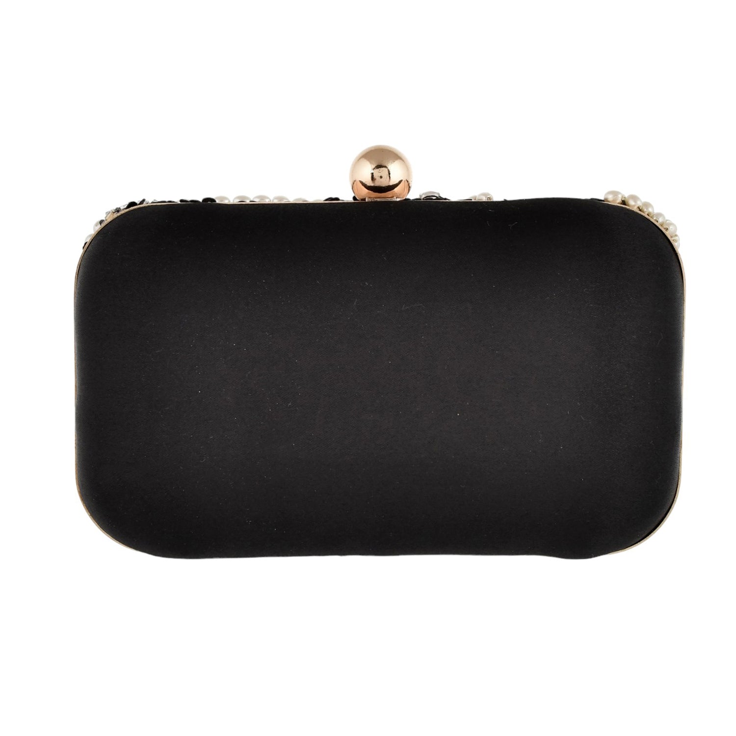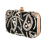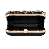 Trendy Bags Black Paisley Motifs Studded Clutch