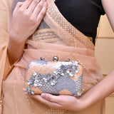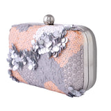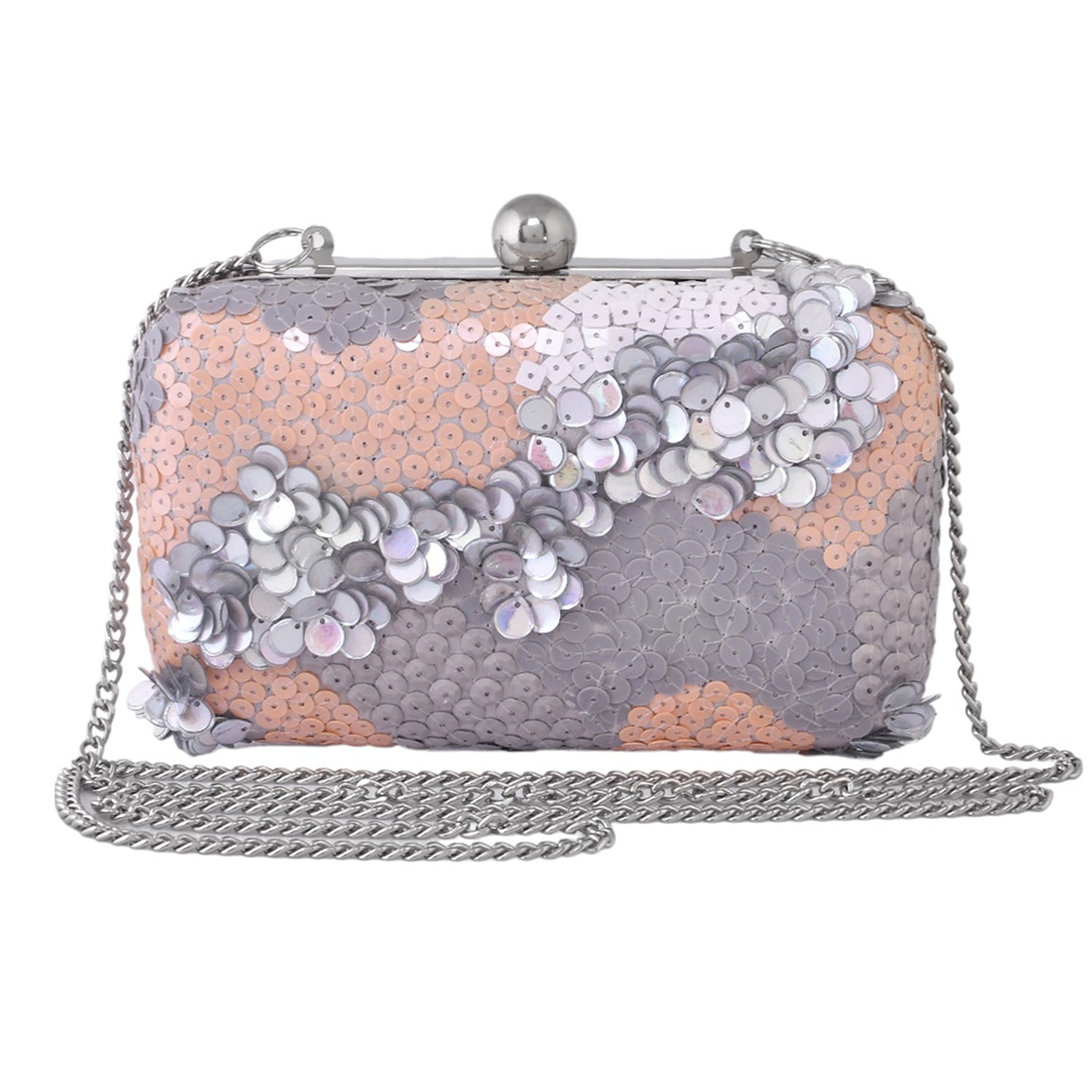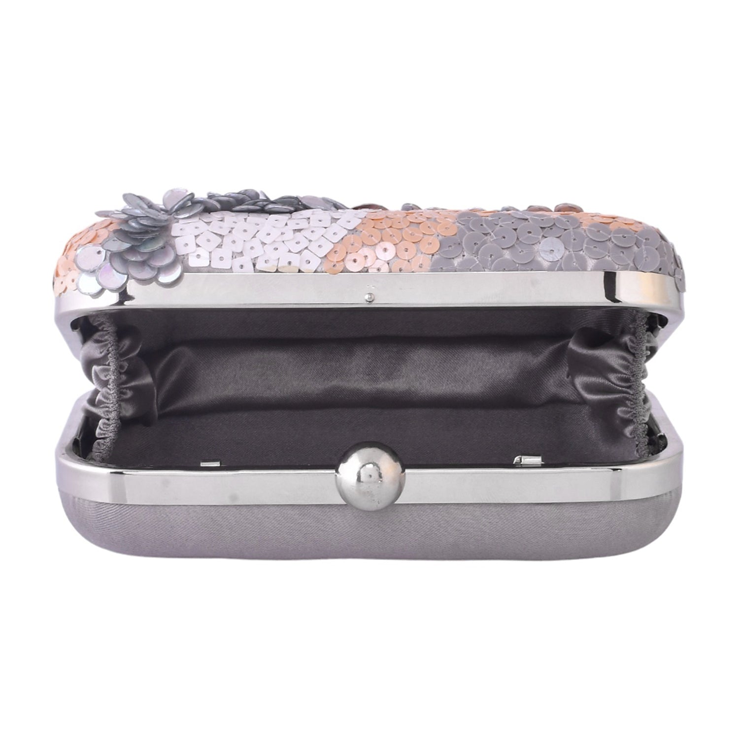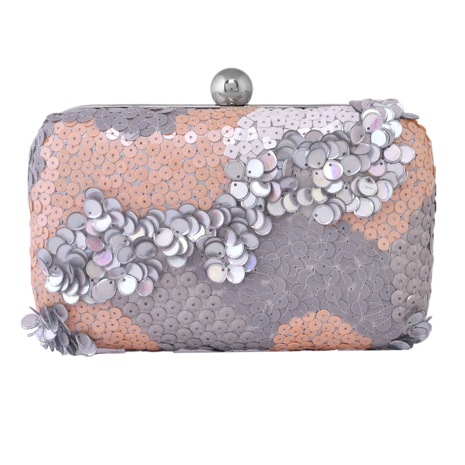 Sequins and gems adorned clutch in a lovely grey colour. Made from durable and high quality fabric, the clutch is versatile and spacious.