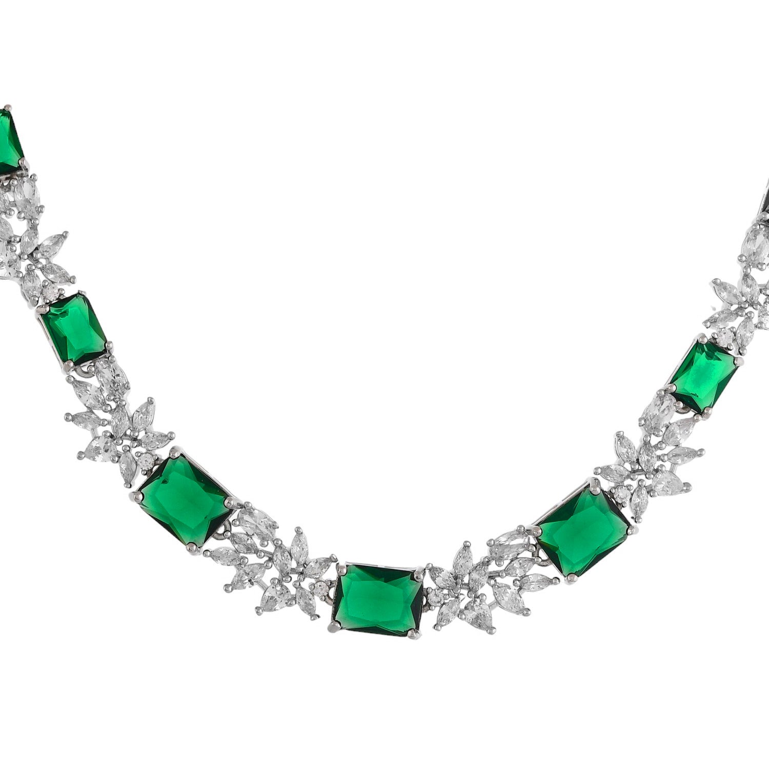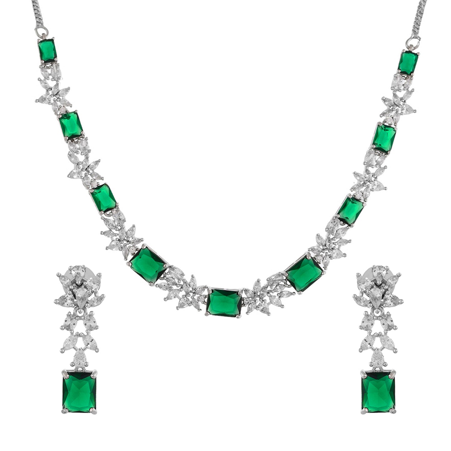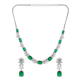 Sparkling Elegance Vintage Charm Green American Diamond Necklace Set