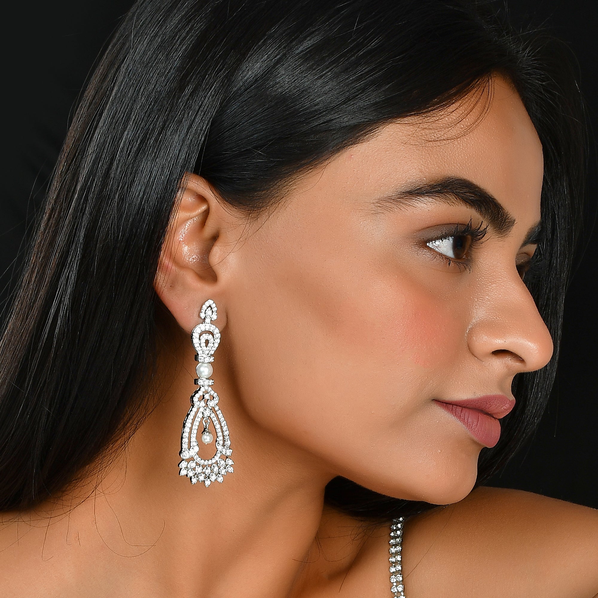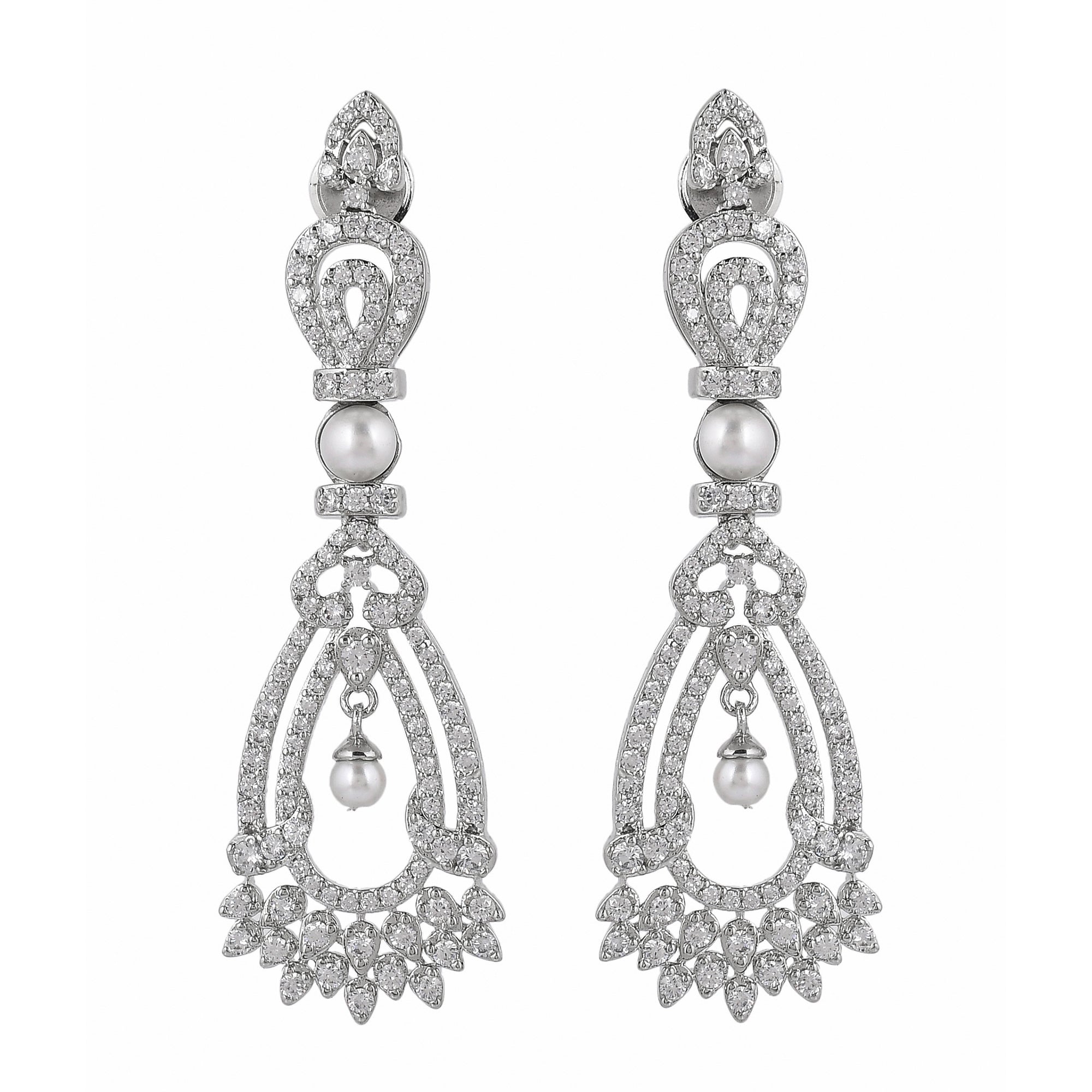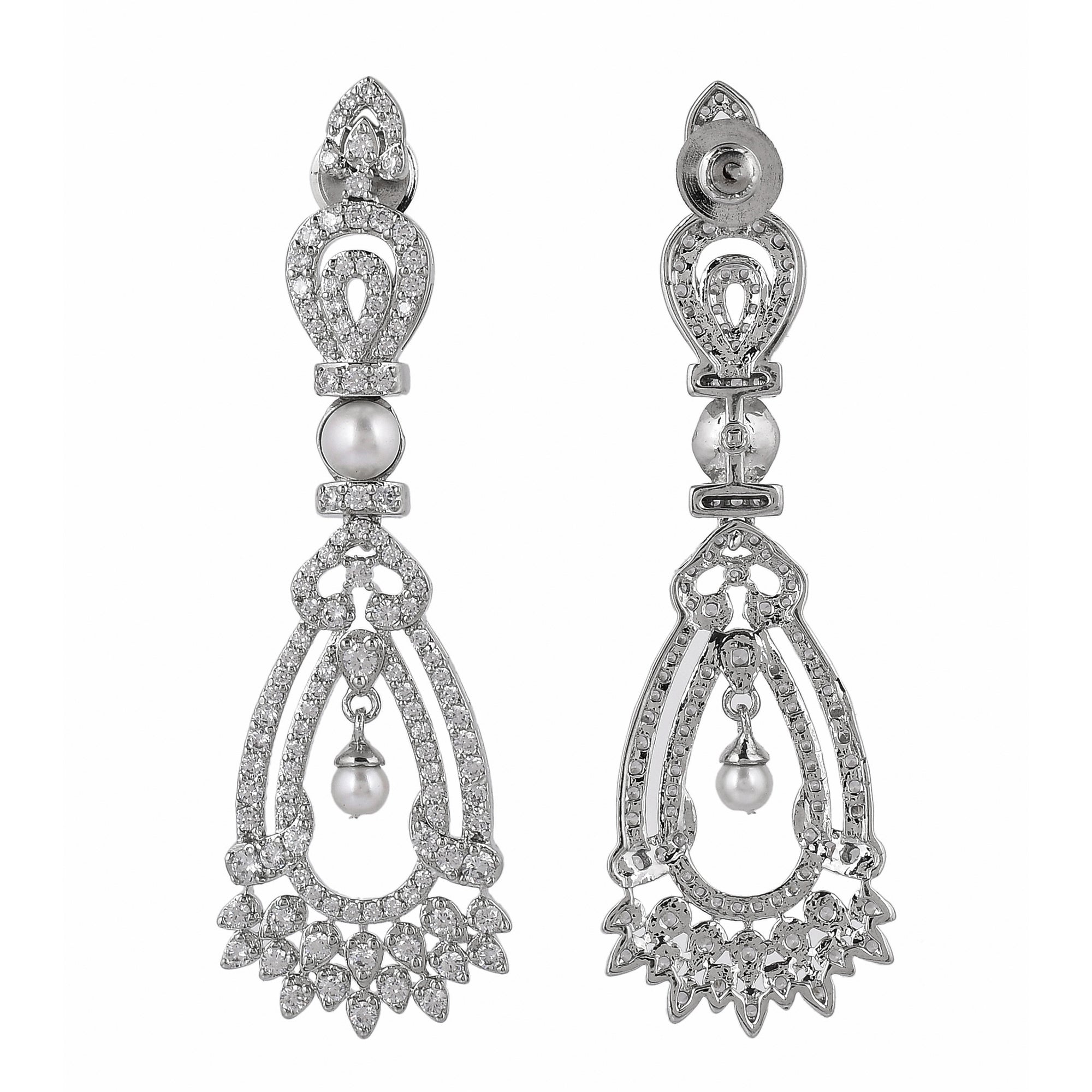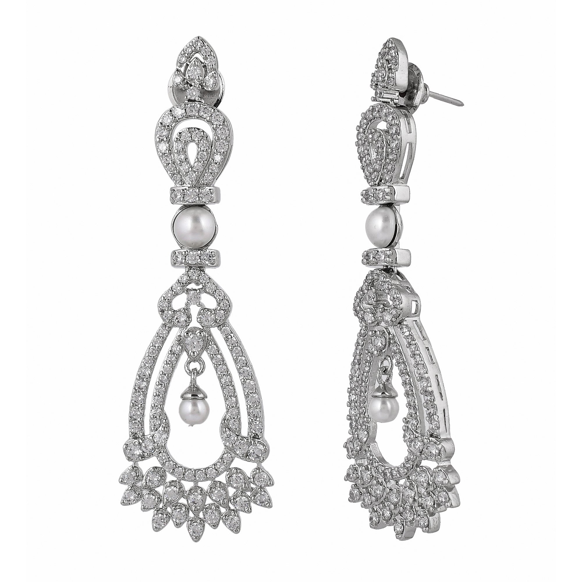 Glitter up your assemblage with this beautiful water -drop shaped earring collection. This alloy-based jewelry is all set with white diamonds and silver plating that adds more elegance and elevates your look instantly. This adorn with freshwater drop-shaped diamond and...