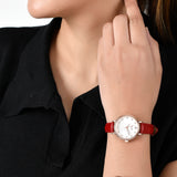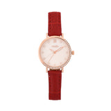A sleek, red strap women's analog watch. Crafted from brass and rose gold plated, the watch will compliment all your favourite looks.