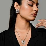 A taste for silver jewels is a rich taste. If you like to accessorize a little but want to make it another level check our beautiful sparkling silver necklace set with diamonds and pearls attached, it can game your level...