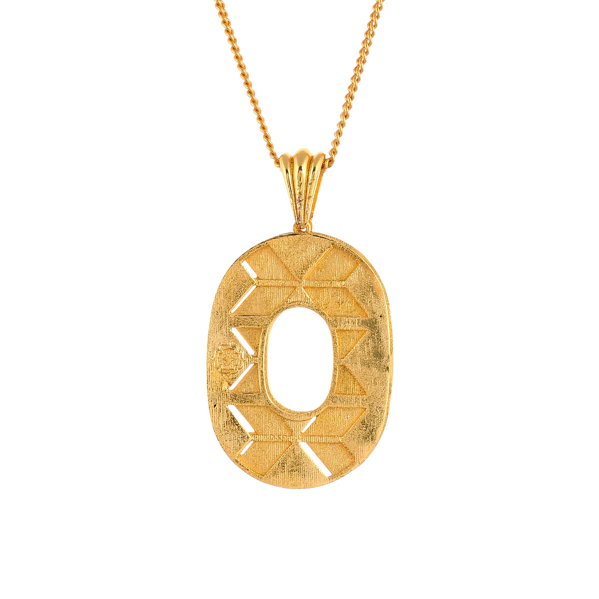 The traditional African basket art of Zulu has inspired this zig-zag pattern overlapping design pendant, which has been fashioned out of brass. Featuring colorful enamel and yellow gold plating, the pendant has been threaded into a gold plated rope chain.Caring...