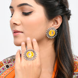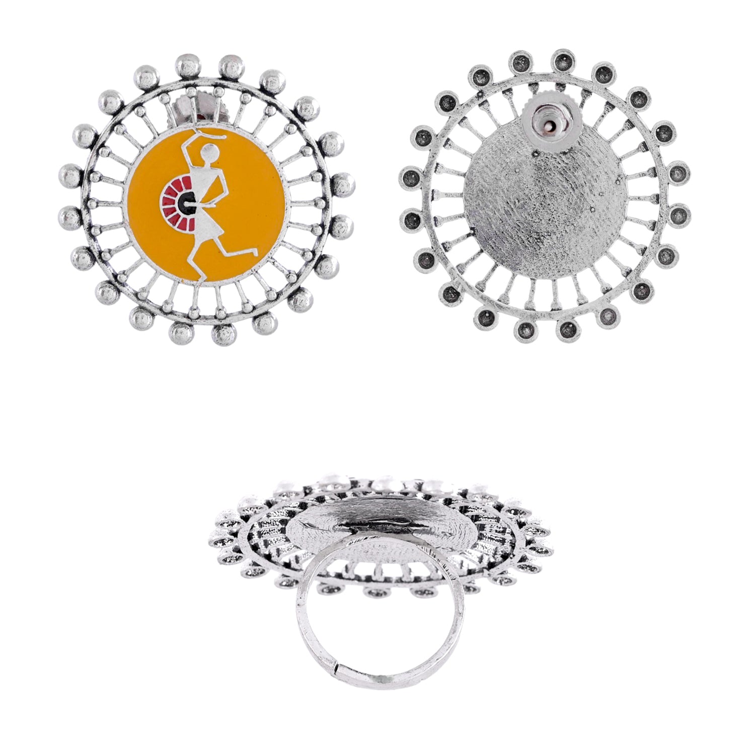 Warli Phool Rahi Sarson Sakal Ban Earrings And Ring Combo