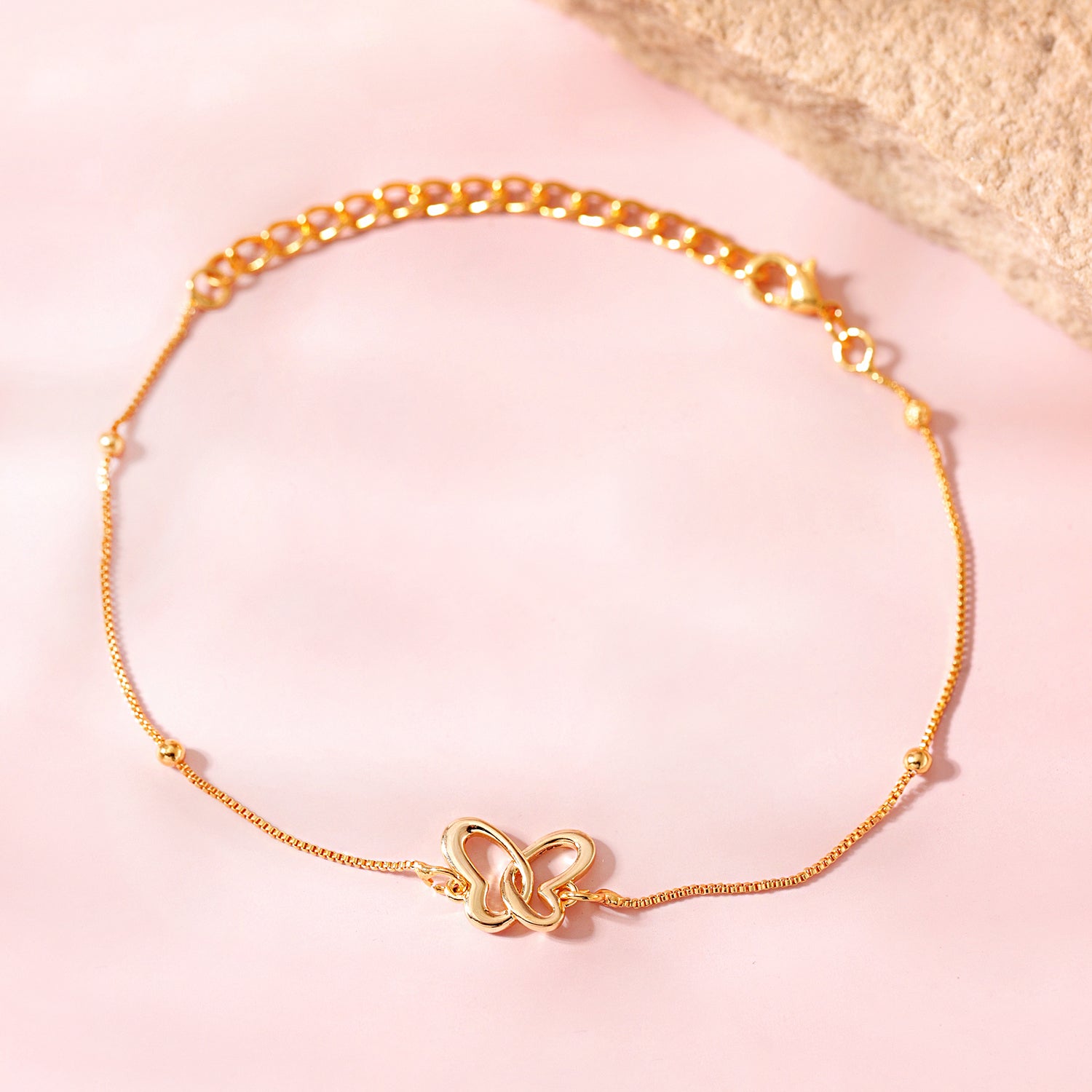 This elegant Golden Butterfly Chain Bracelet is thoughtfully designed as part of our Valentines Day love-inspired jewellery range, celebrating romance, femininity and beautiful emotional expression. The bracelet features a delicately sculpted butterfly motif at the center, symbolizing freedom of spirit, transformation of love and the gentle beauty of emotional connection. Its slim chain link pattern flatters the wrist elegantly and ensures a graceful, lightweight fit suitable for all-day wear. Created from premium quality brass and finished with a radiant yellow-gold plating, this bracelet offers a soft luxurious shine that mimics real gold, making it an ideal accessory for everyday elegance as well as special occasions. Whether worn as a personal token of self-love, a symbol of affection from a partner, or a fashionable styling piece, this bracelet brings meaning and beauty together in a refined and chic jewellery design. It captures the essence of gentle romance and subtle sophistication, making it a treasured piece that complements modern as well as classic style sensibilities.