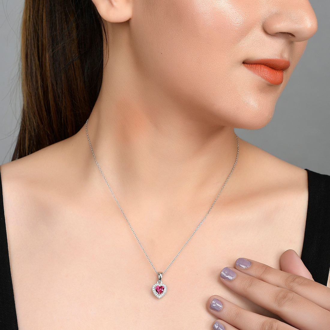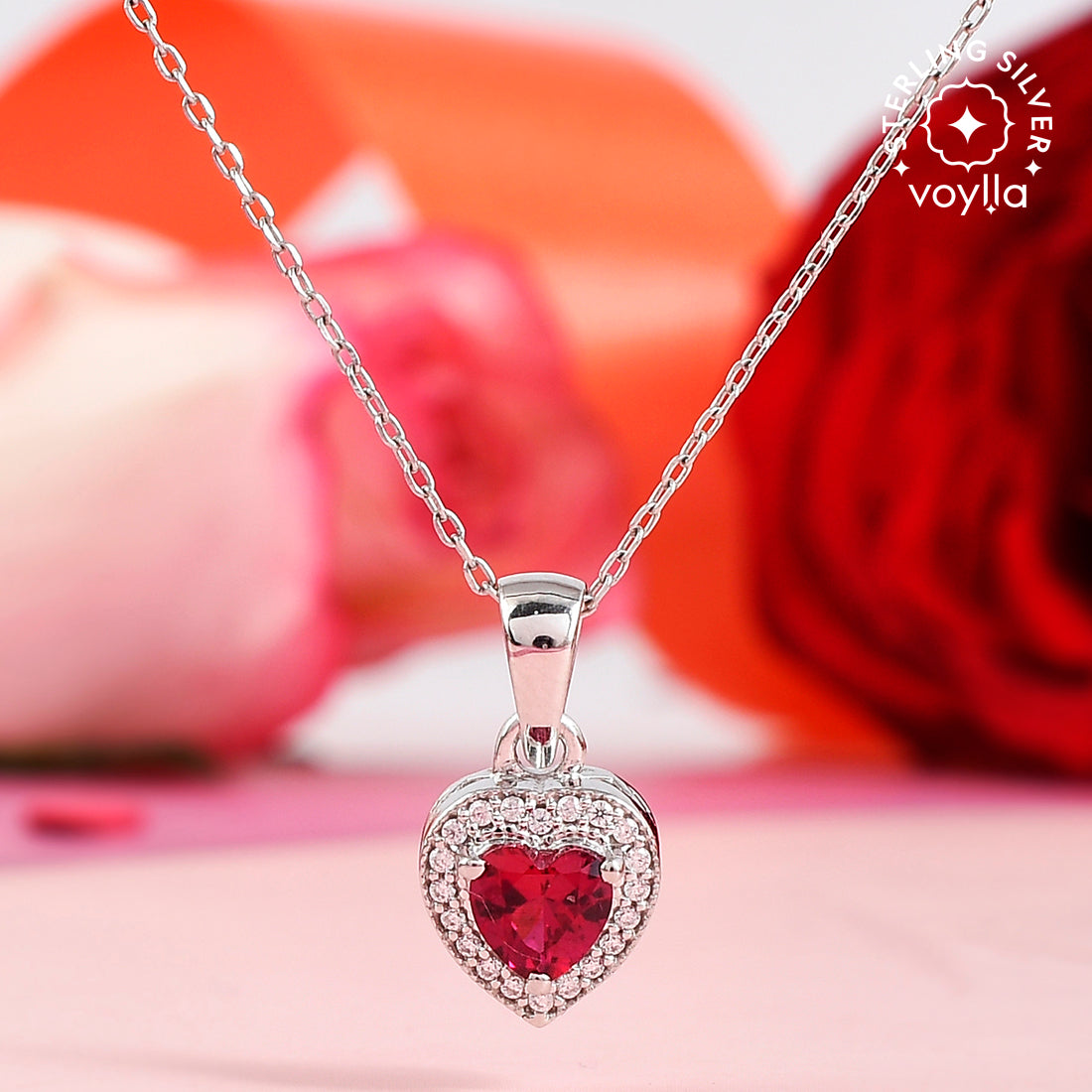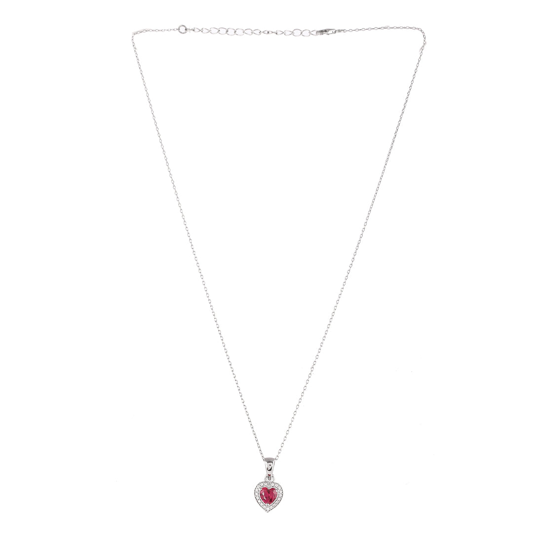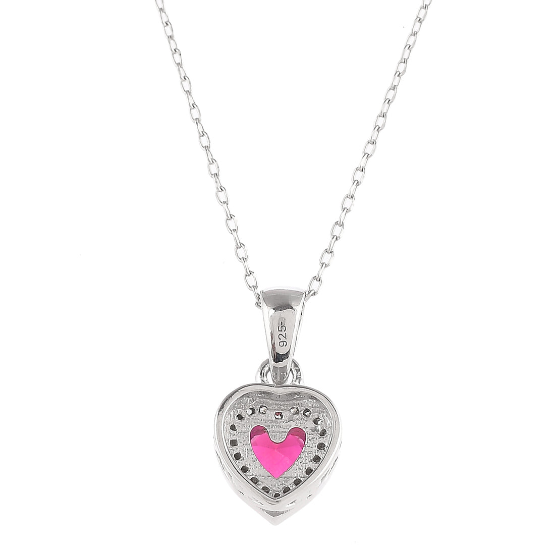 Pink and red zirconia gemstones adorned heart pendant. Made from pure 925 sterling silver and white rhodium plated. Pair with chains and bracelets. The perfect V Day gifting option.