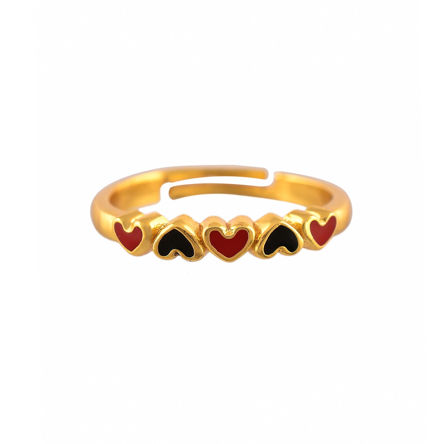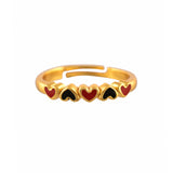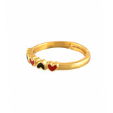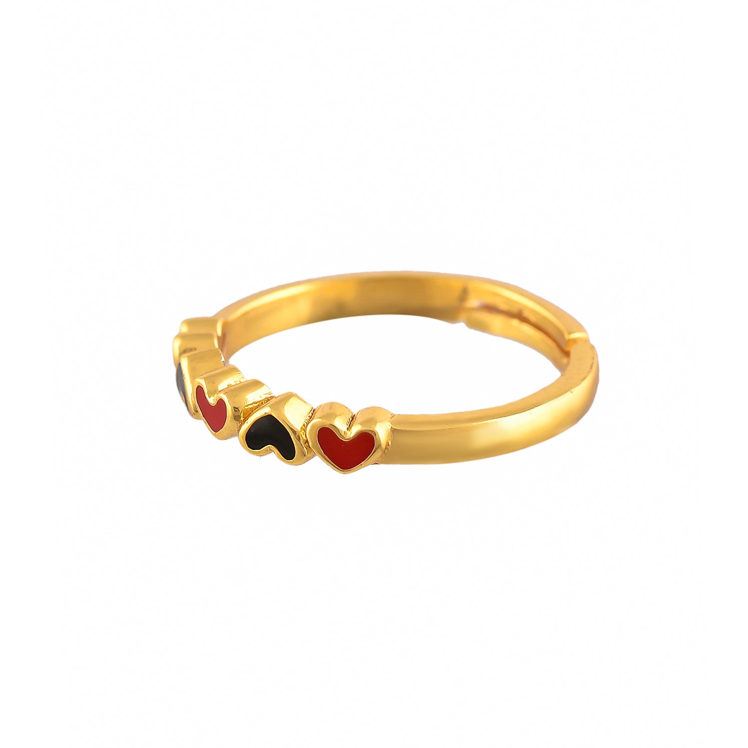 The perfect gift for Valentine's Day, this lovely hearts motif band ring has been embellished with colourful enamel. The adjustable ring has been fashioned out of brass. Gold plating adds to the charm of this versatile piece.