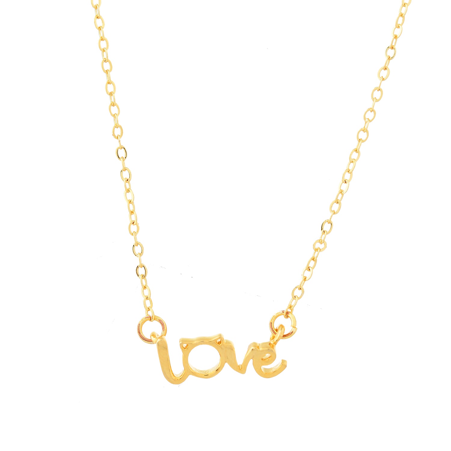 The Valentine's Day Purrfect Love Pendant Necklace is a beautifully crafted piece from the Valentines Collection, designed to capture the essence of love and affection. Made from high-quality brass and plated with gold, this necklace features a delicate chain that holds a charming pendant spelling out the word "love" in an elegant, cursive font. The pendant's design is both timeless and contemporary, making it a versatile accessory for various occasions, from festive celebrations like Diwali and Rakshabandhan to special events such as weddings, parties, and cocktail gatherings. Its warm gold color complements a wide range of outfits, adding a touch of sophistication and romance. This necklace is an ideal gift for women, whether for a girlfriend, wife, mother, or sister, and is perfect for Valentine's Day, Christmas, New Year, or any other special occasion. The Purrfect Love Pendant Necklace is not just a piece of jewelry; it’s a heartfelt expression of love and appreciation.