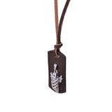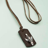 Bar Detailing Pendant With Brown Leather Chain For Men