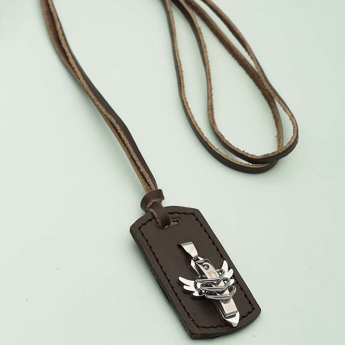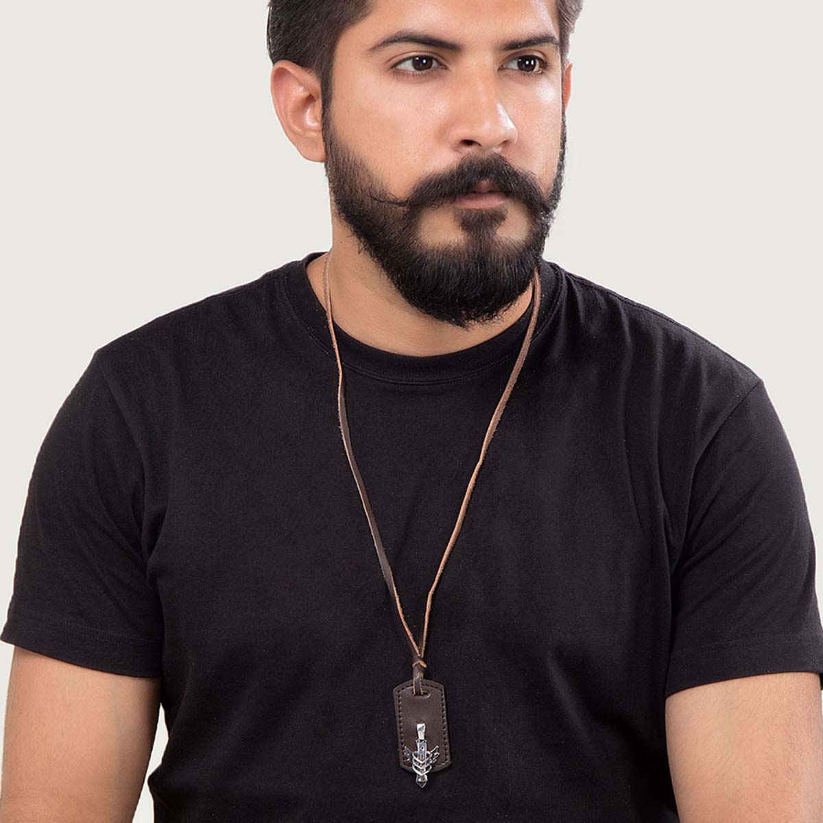 Designer Sword Detailing Pendant With Leather Chain For Men