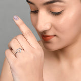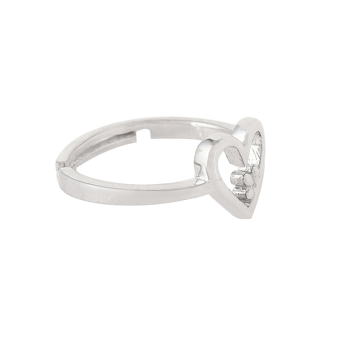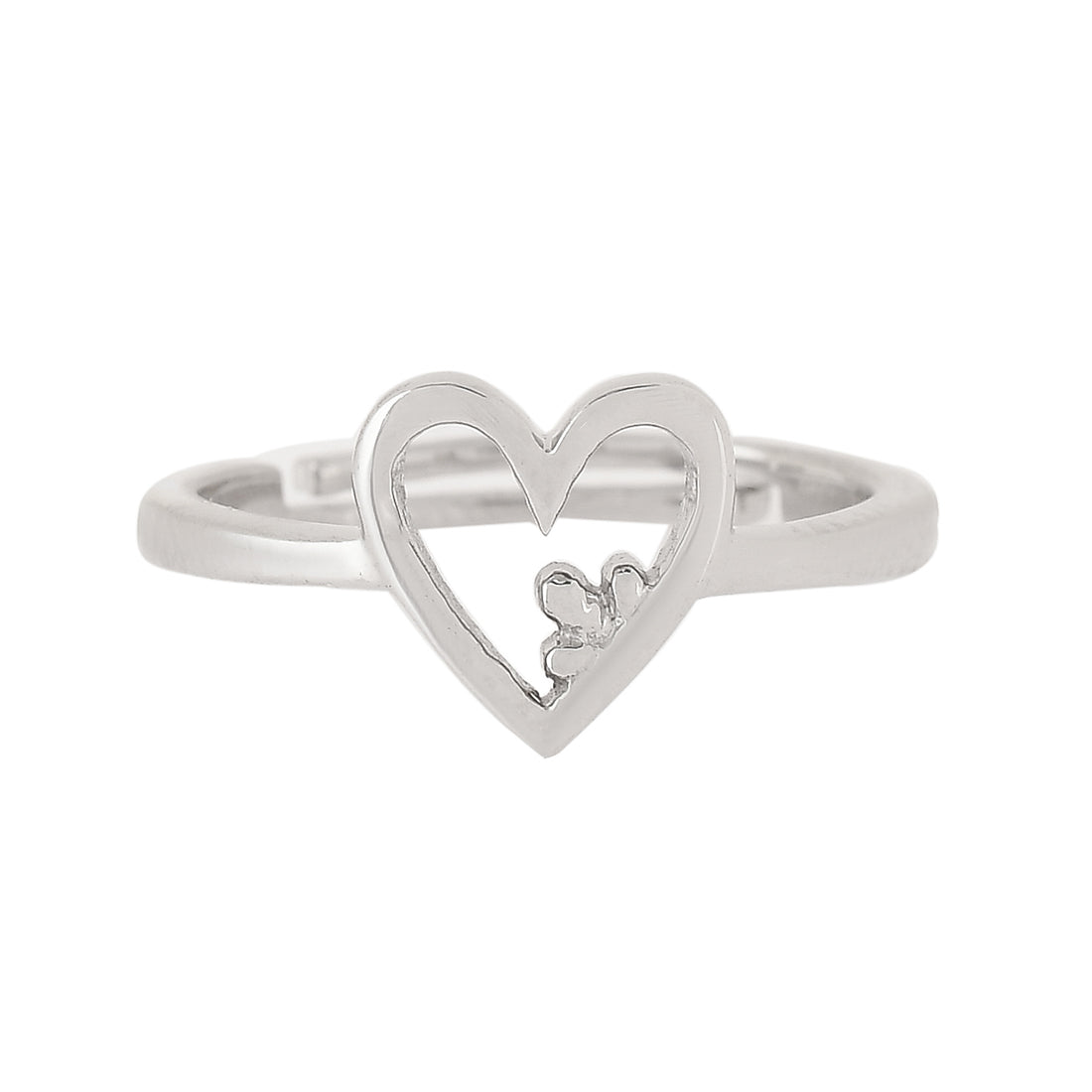 Heart and clover design finger ring with white rhodium plating and high polish finish. The piece has been crafted from 925 sterling silver and promises to be a comfortable wear at all times.