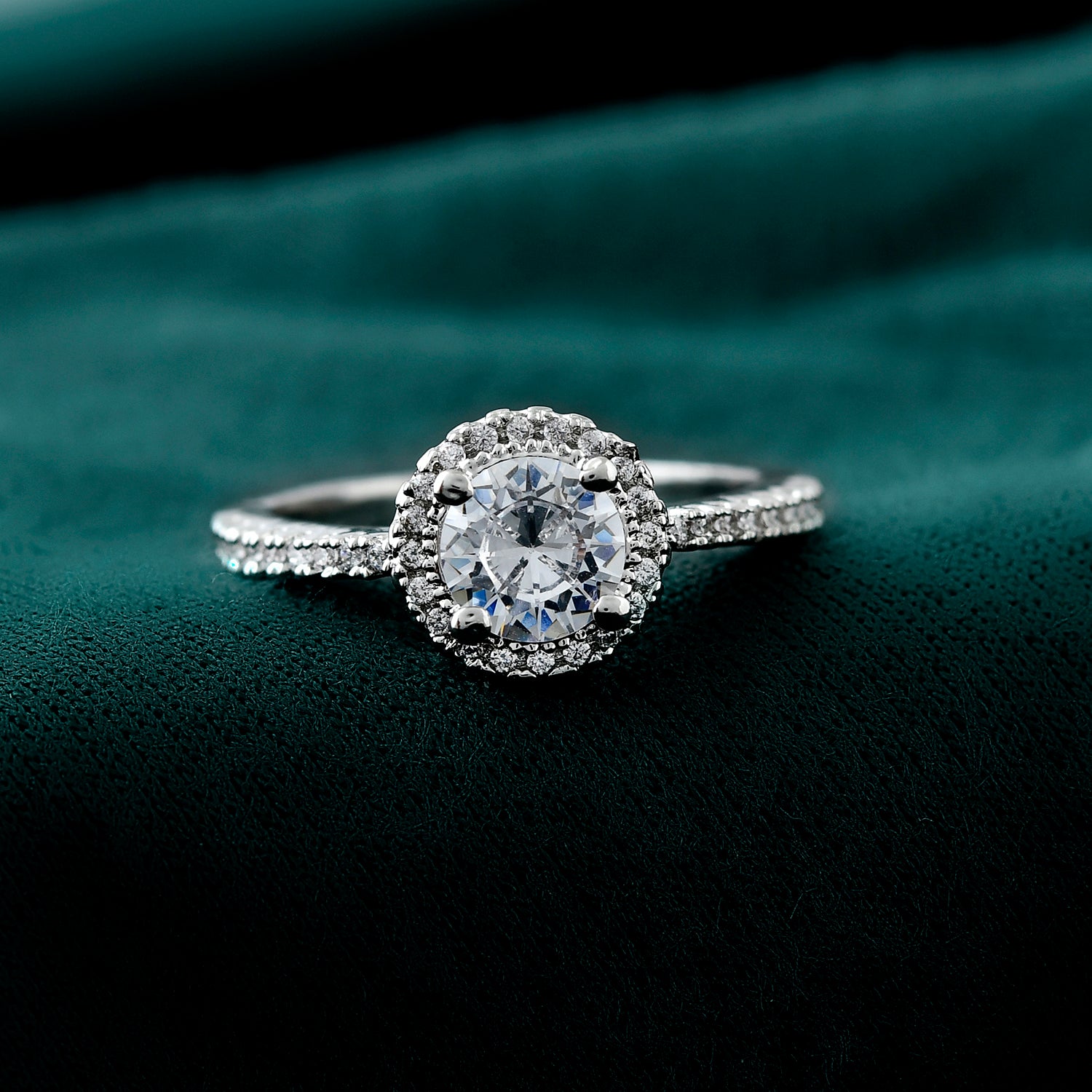 Celebrate love with the Valentine's Day Eternal Spark Solitaire Ring, a stunning piece from our exclusive Valentines Collection. Crafted from high-quality brass and plated with white rhodium, this ring features a dazzling American diamond at its center, surrounded by a halo of smaller CZ stones that enhance its brilliance. The intricate design and superior craftsmanship make it a perfect choice for proposing to your loved one or as a thoughtful gift for special occasions like Valentine's Day, Diwali, Rakshabandhan, Christmas, or New Year. Its versatile style makes it suitable for party wear, festive events, weddings, and even daily wear. The ring's elegant design and sparkling stones make it a timeless piece that will be cherished forever. Ideal for gifting to women, whether it's your girlfriend, wife, mother, sister, or a dear friend, this ring is sure to make any woman feel special and loved.
