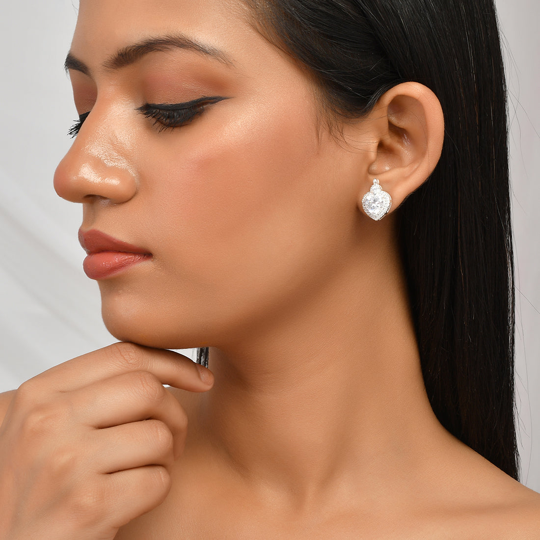 An elegant heart shaped sterling silver earrings featuring a dainty chain. Match this pretty ornament with your party wear to add more of edge and oomph in your look!