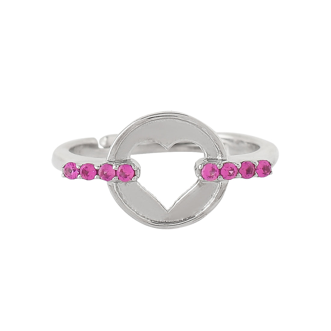 925 sterling silver ring featuring a heart shape design and pink zirconia gemstones. White rhodium plated and featuring a high polish finish. Make your loved one's V Day extra special with this alluring piece.