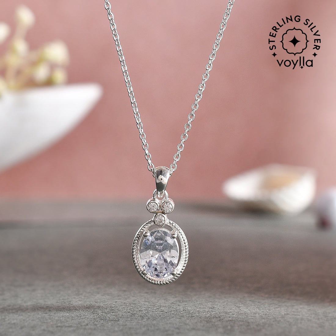 Mother’s Day Collection Round Cut Zircons Sterling Silver Pendant with Chain