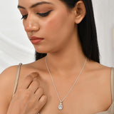 A charming cocktail pendant set made from 925 sterling silver. The pendant, threaded in a silver serpentine chain, and matching earrings have been adorned with round cut zirconia gemstones. White rhodium plated for added grace, the set will make the...
