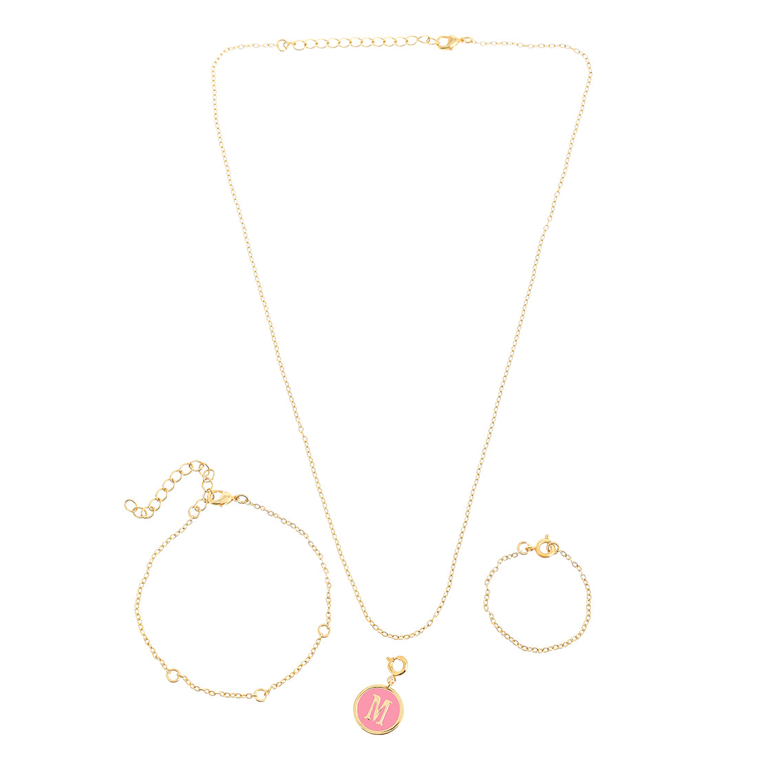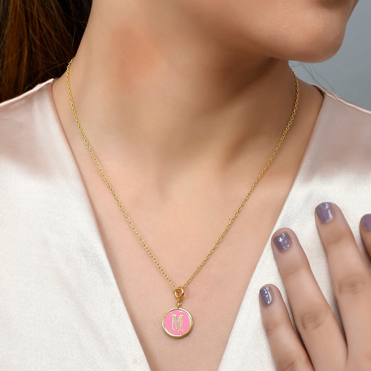Pink enamel details alphabet M charm, fashioned out of brass. The gold plated charm is lightweight, comfortable and versatile enough to be paired with all kinds of bracelets and watches.Caring for your fashion jewelry: We, at Voylla, take care of...