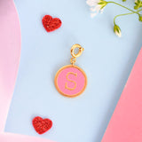 Alphabet S gold plated pink enamel charm for watches and bracelets. Fashioned out of brass and a good V Day gifting option. Weight (Gms): 1.96 Size (LxW)(Inch): 9.75*5.85 Material: Brass Plating: Yellow Gold Color: Gold Sales Package: 1 Charm,1...