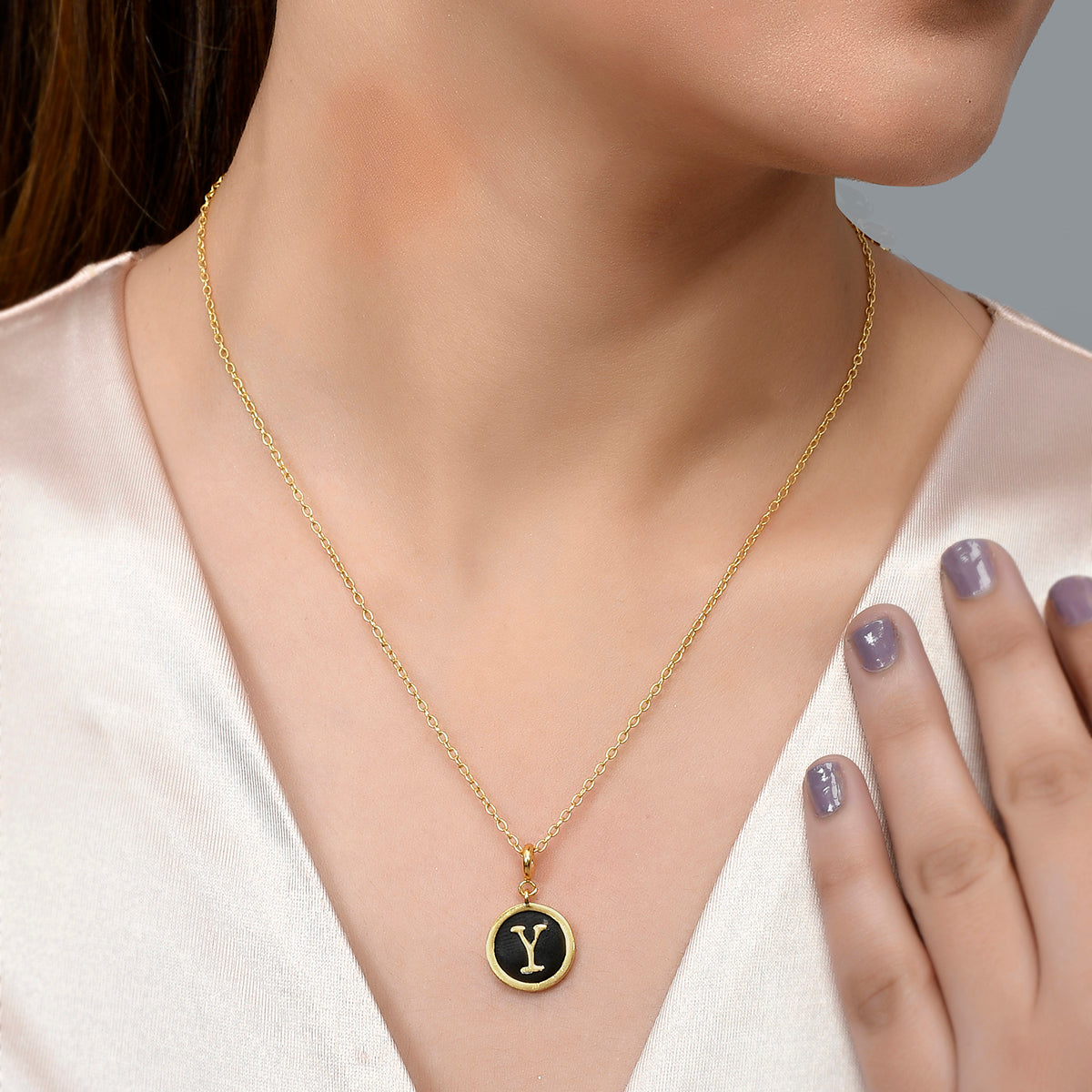 Yellow gold plated alphabet Y charm. Made from brass and featuring black enamel details. A good V Day gift and can be added to watches and bracelets for more allure. Caring for your fashion jewelry: We, at Voylla, take care...