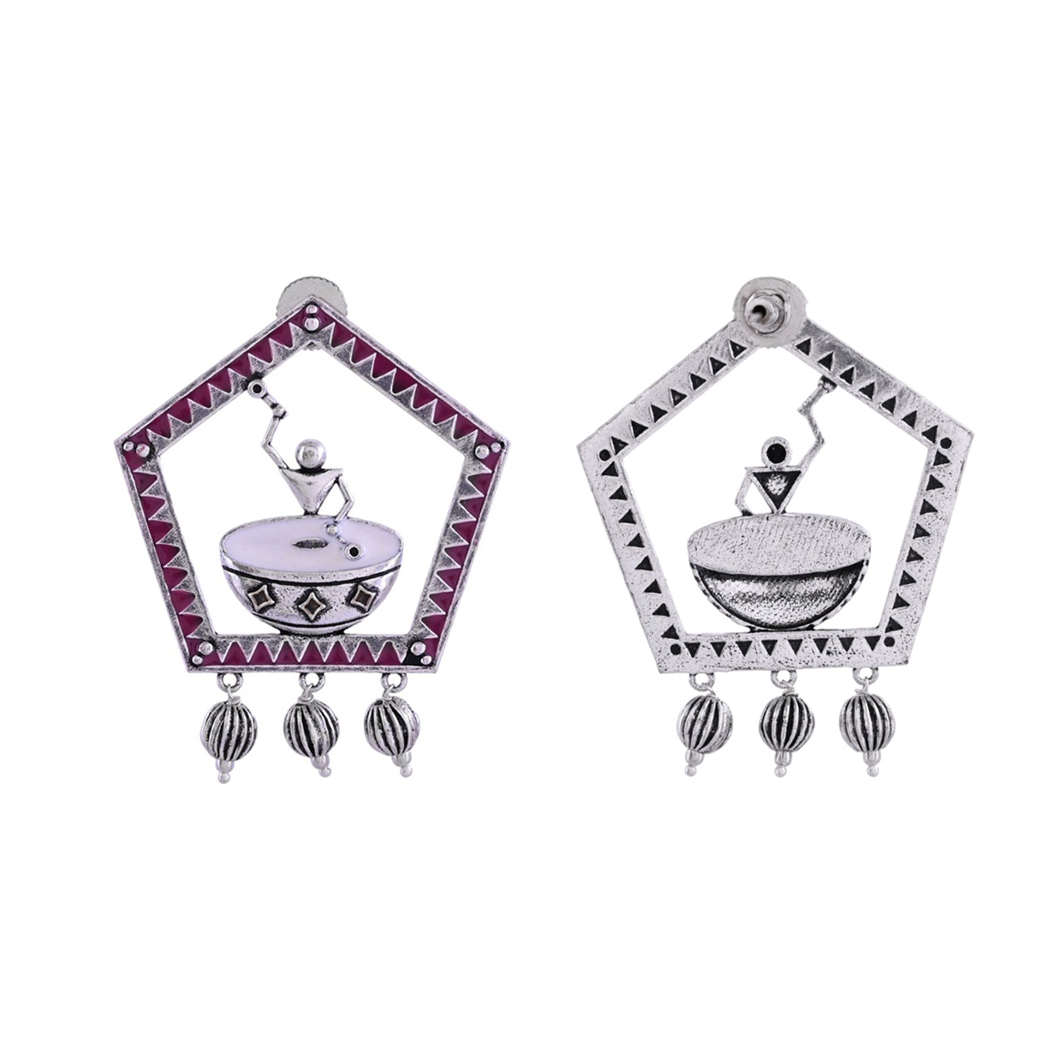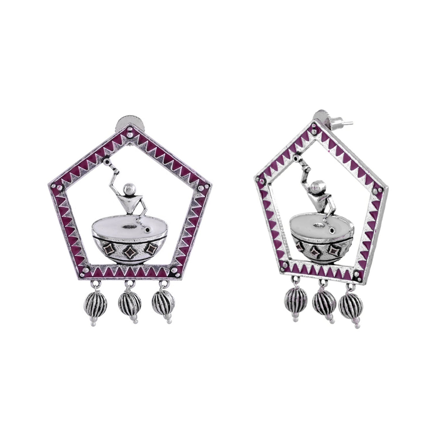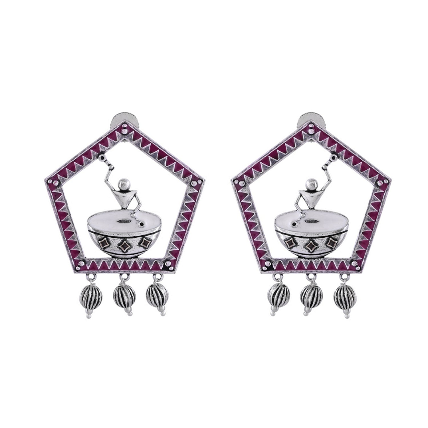 The Warli artform, which has been a symbol of Indian pride since times immemorial, has inspired these tribal motifs adorned earrings. Made from brass and silver plated, the enamelled pair has been lightly embellished and promises to be a comfortable wear at all times.