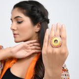 Inspired by the legendary Warli artform, this enamelled statement ring is a symbol of colourful minimalism and grace. Made from brass and silver plated, the ring is adjustable for maximum comfort. It can be paired with just about everything.