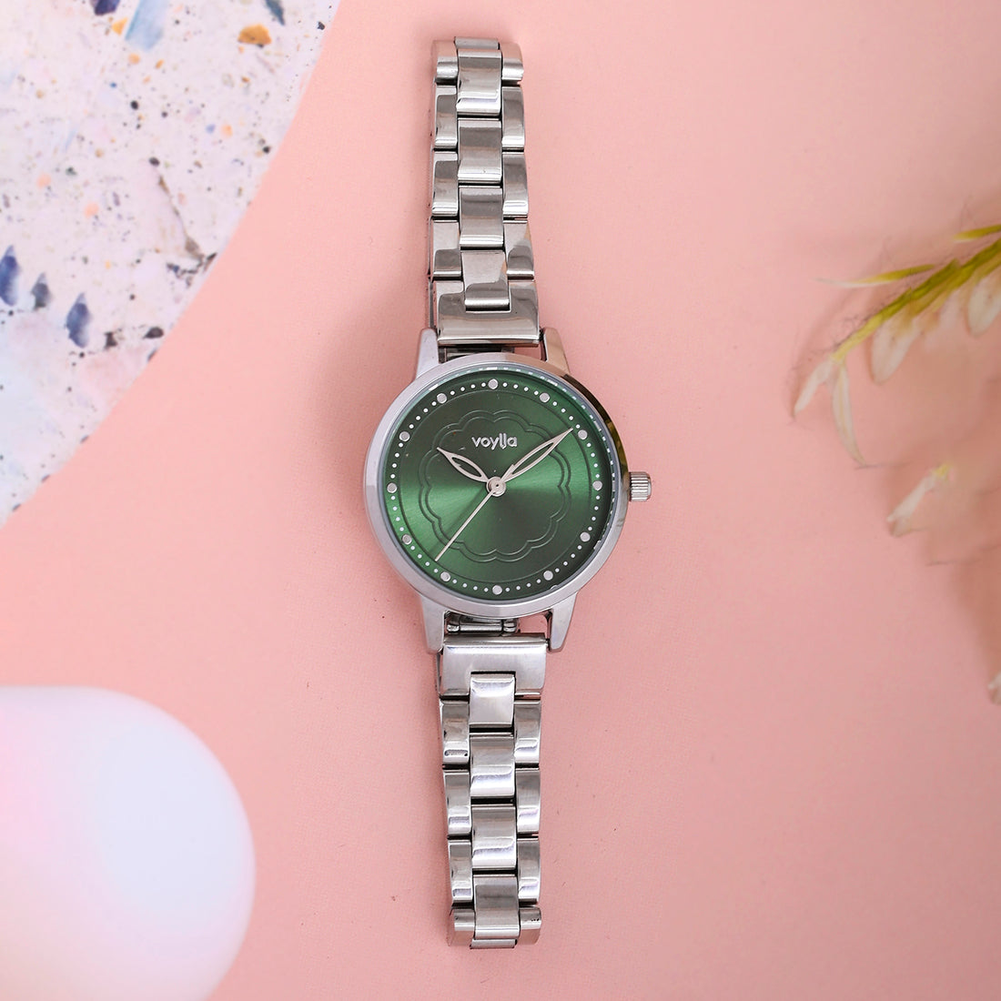 Voylla Silver Toned Green Dial Watch