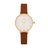 Red strap stainless steel analog watch with yellow gold plating. The piece is lightweight and versatile enough to be paired with just about everything.