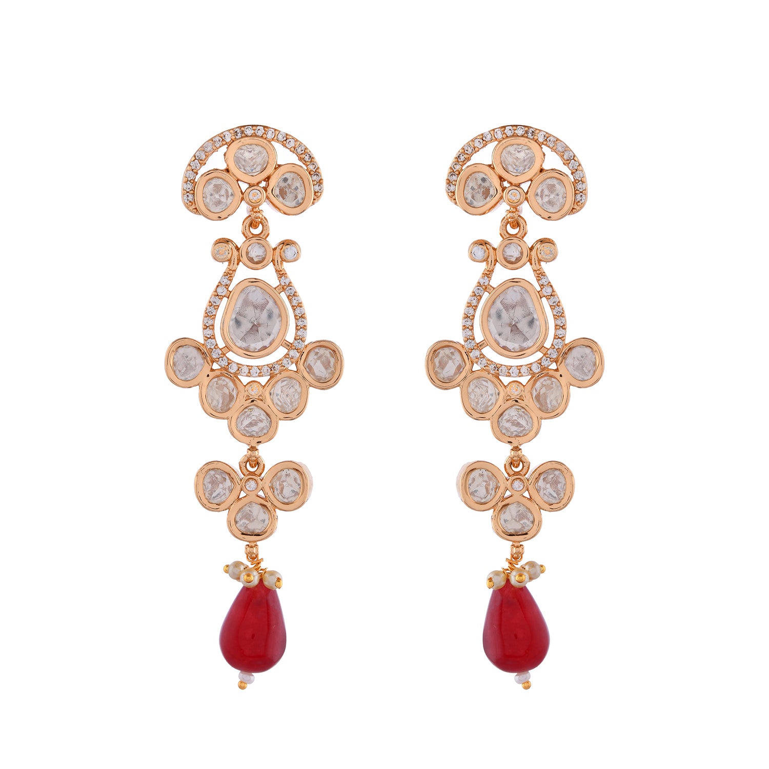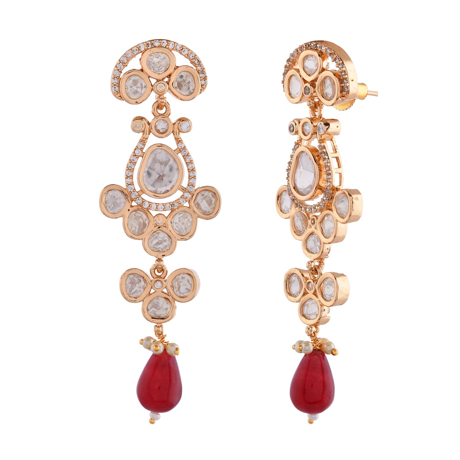 Sparkling Elegance Scarlet Bloom American Diamond Dangler Earrings