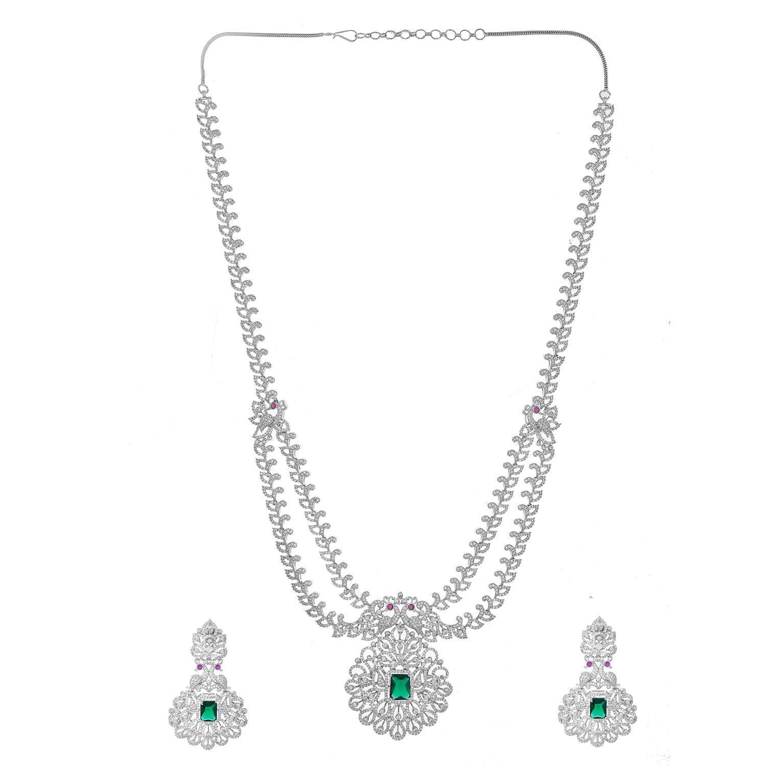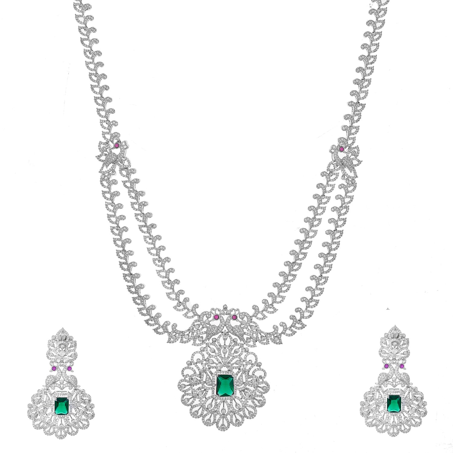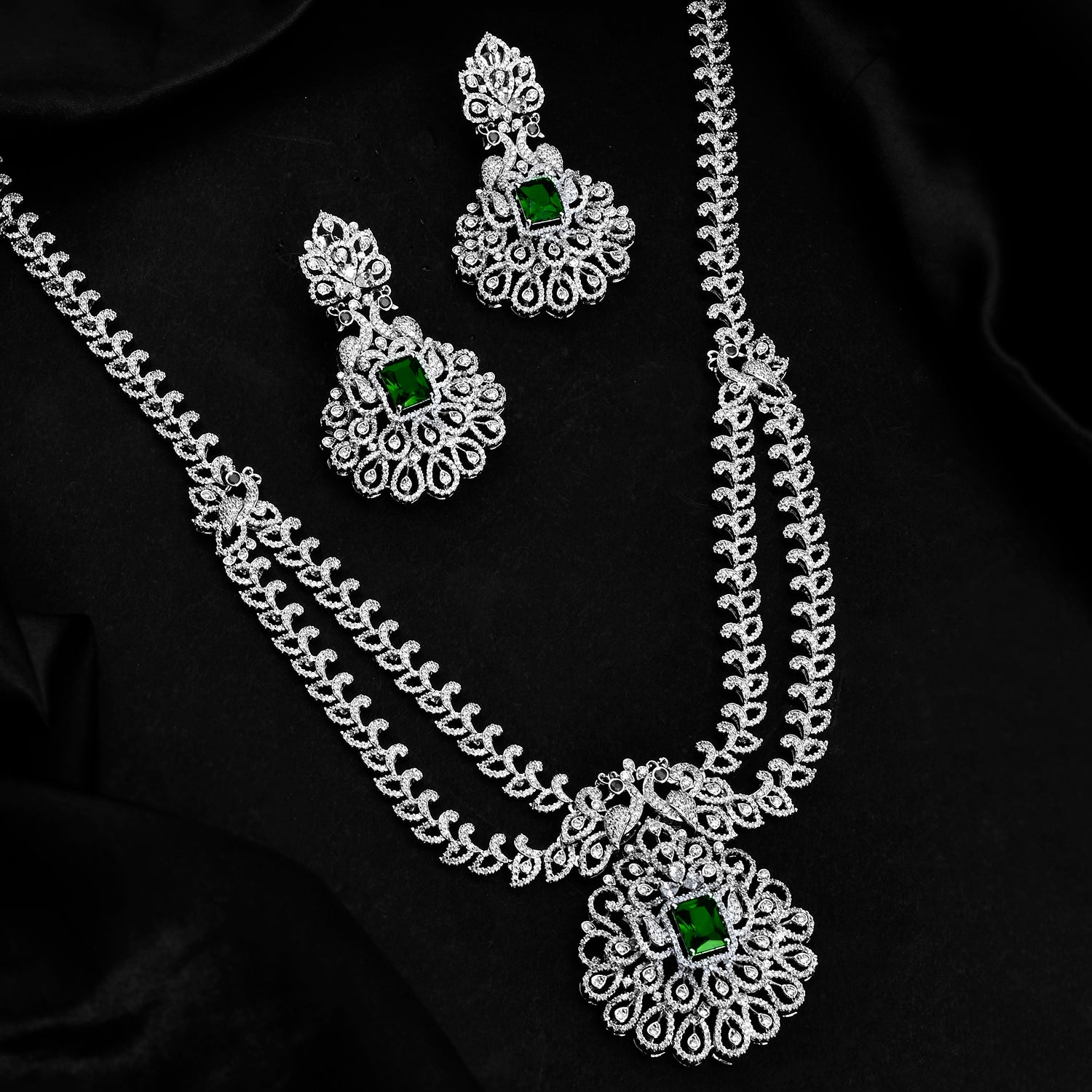 Sparkling Opulance Emerald Plume American Diamond Necklace Set