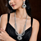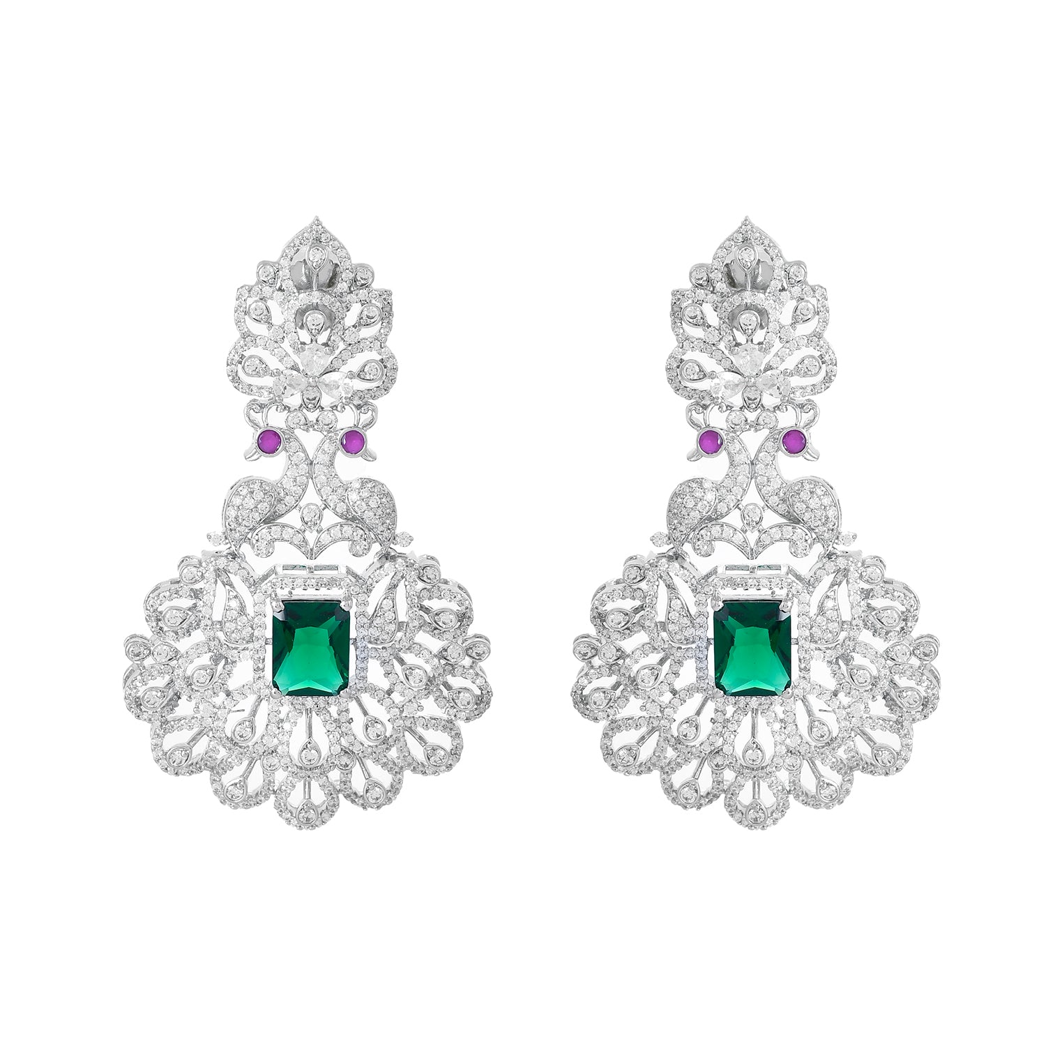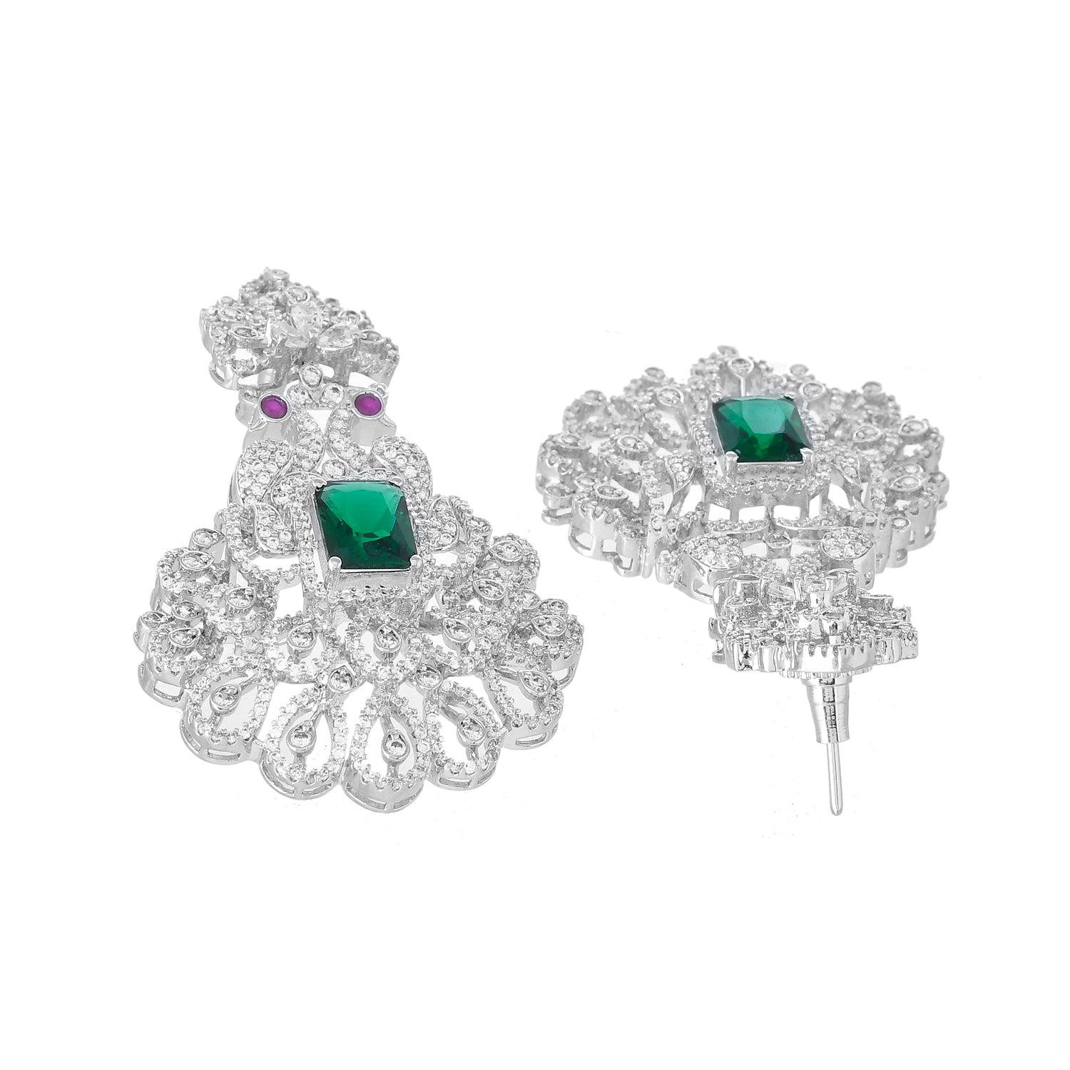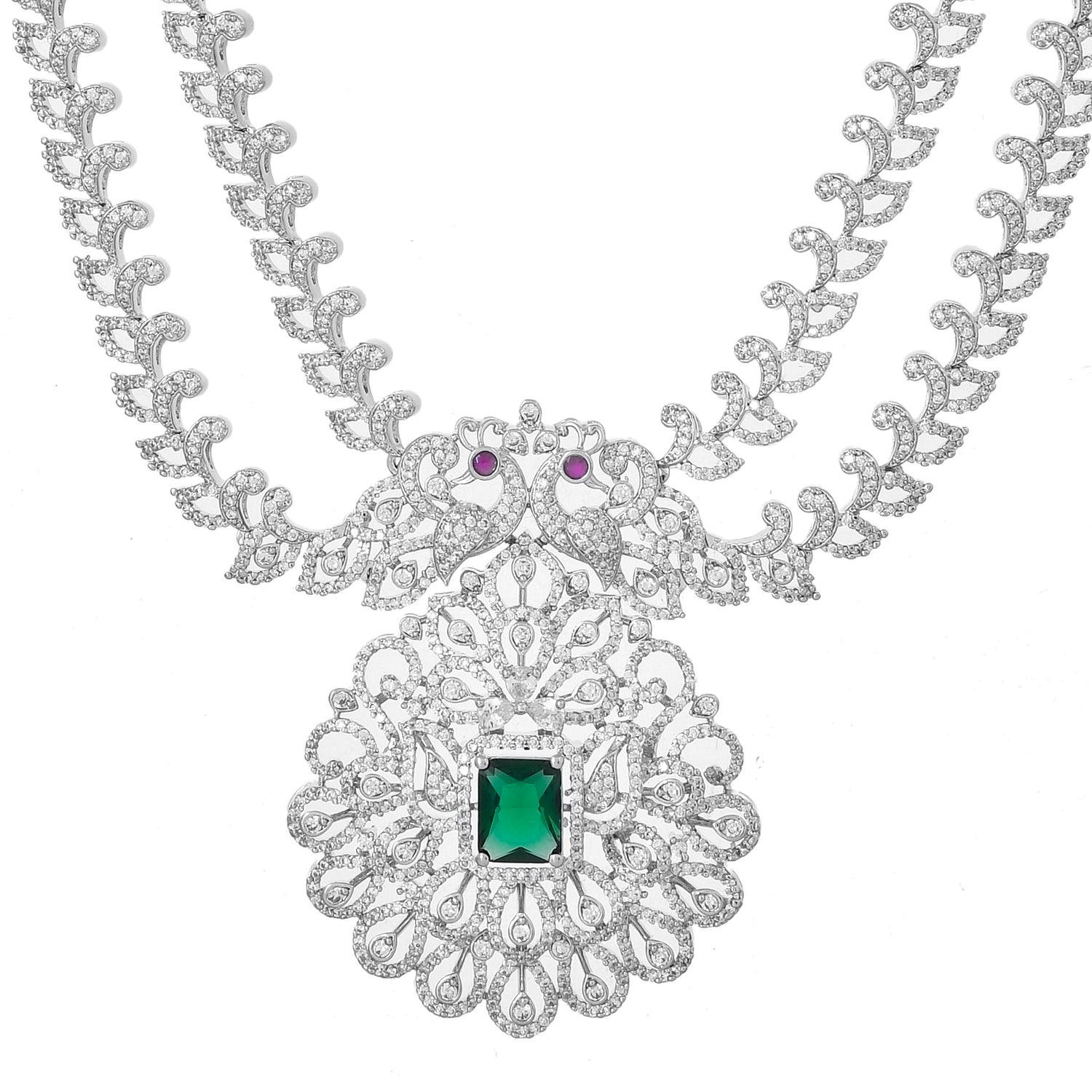 Sparkling Opulance Emerald Plume American Diamond Necklace Set